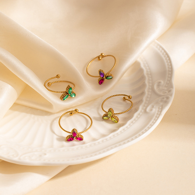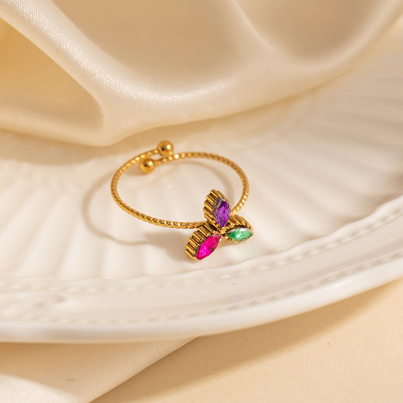 colorful clover zircon ring 1636