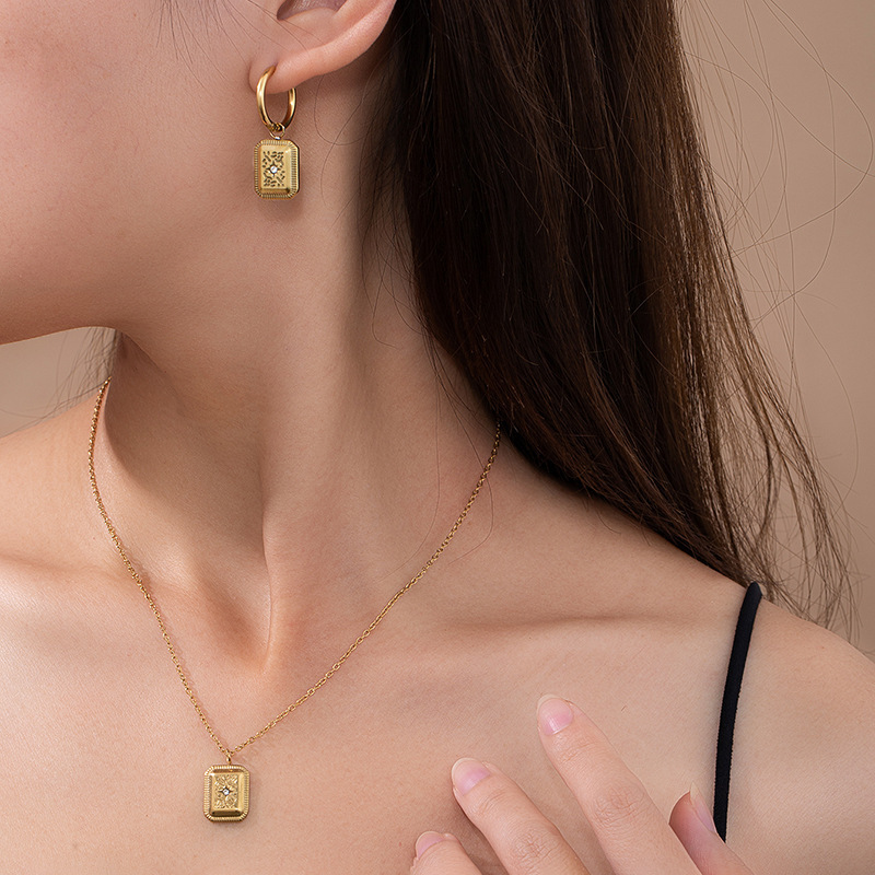 eight awn star square plate necklace 0506
