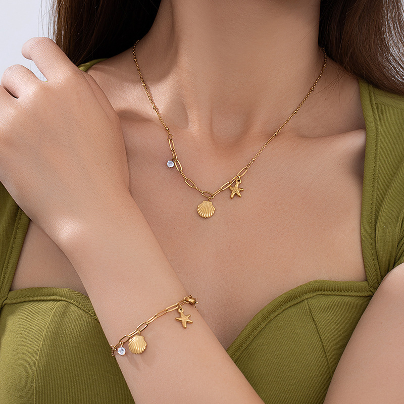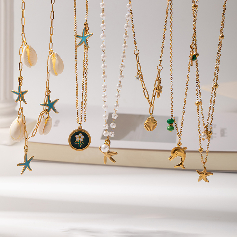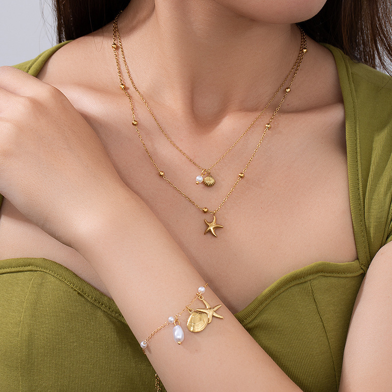 shell starfish double-layer necklace 0521