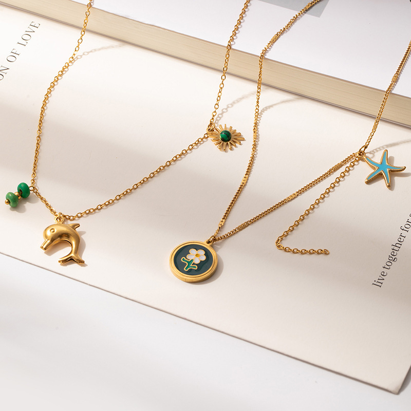dolphin sunflower pendant necklace 0523