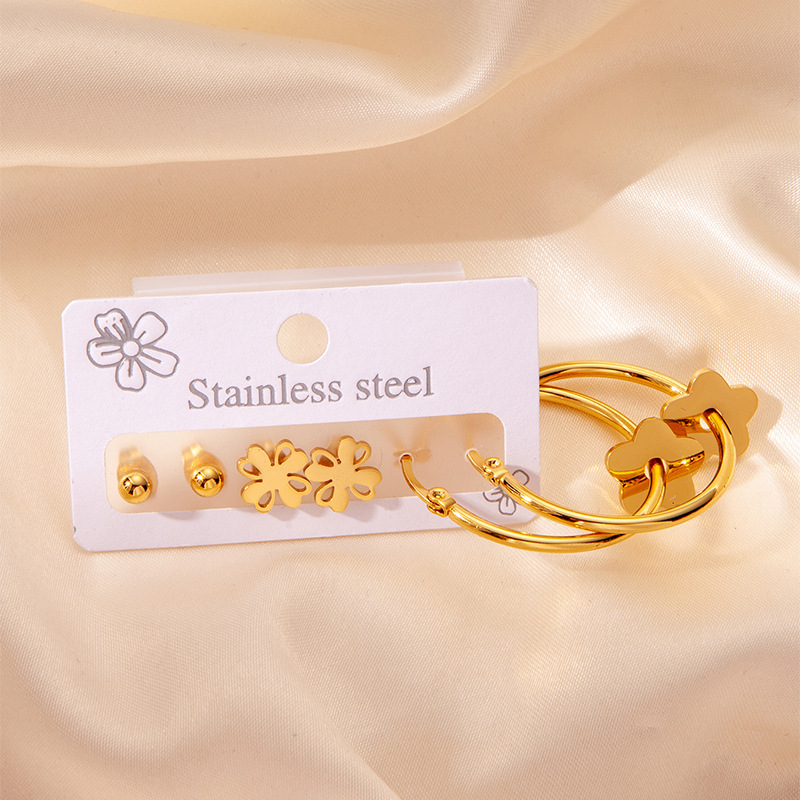 flower titanium steel earrings suit