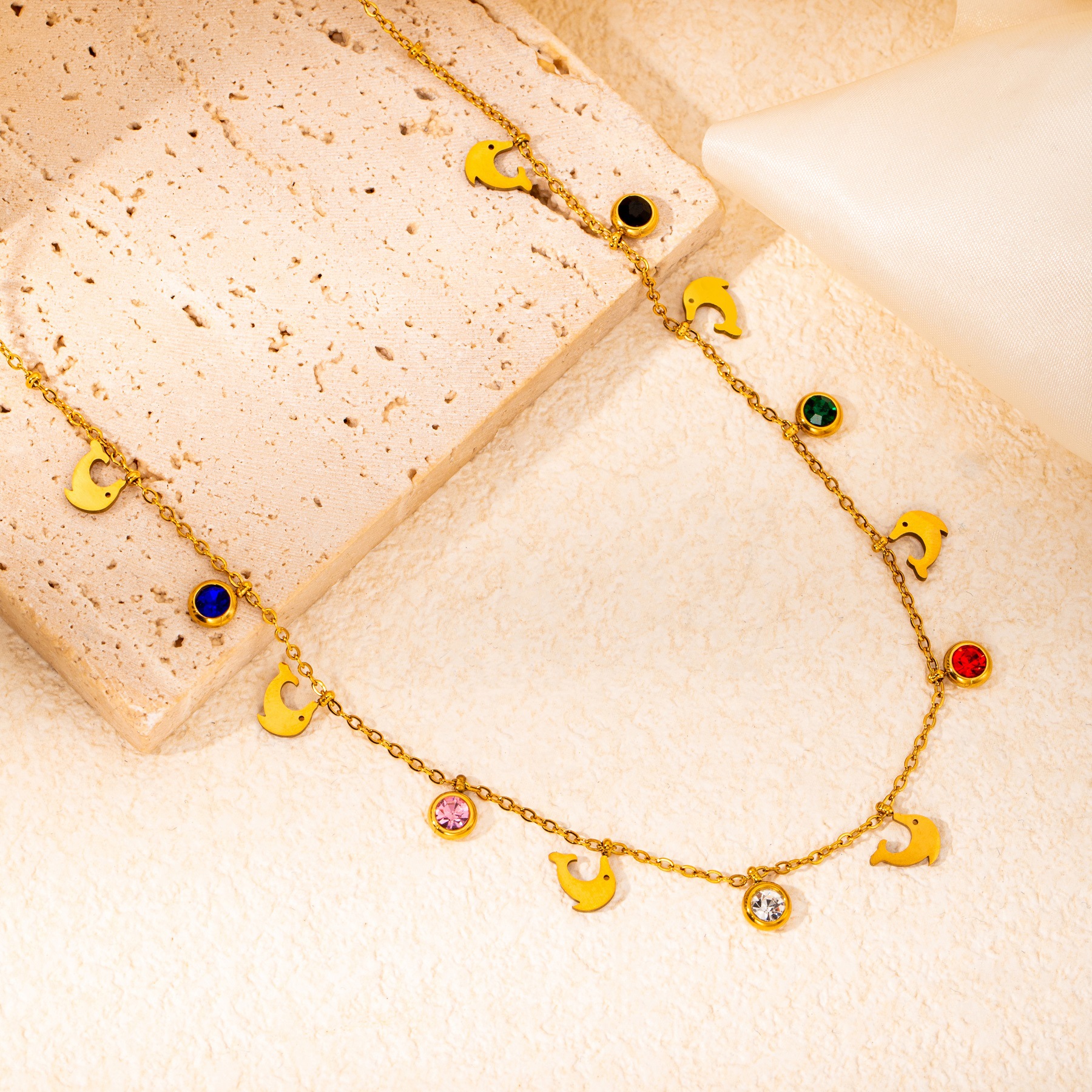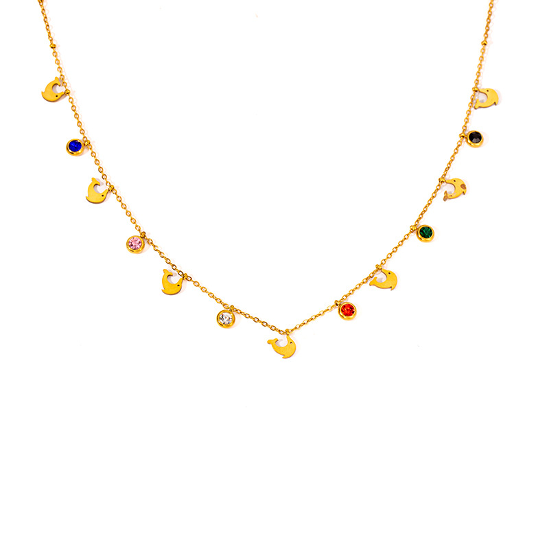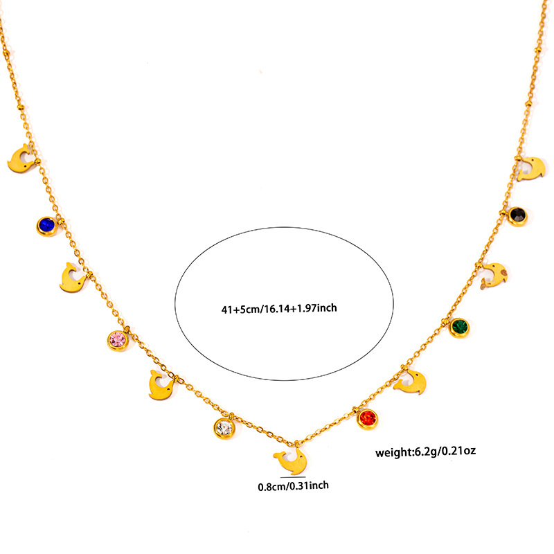 titanium steel color zircon whale necklace
