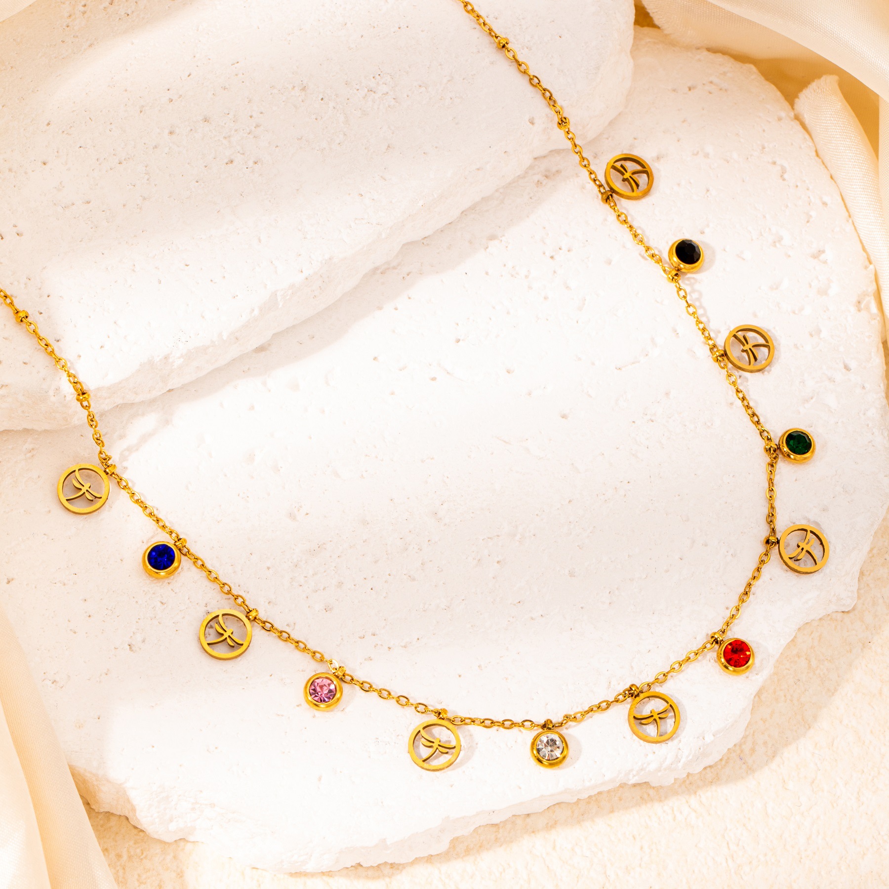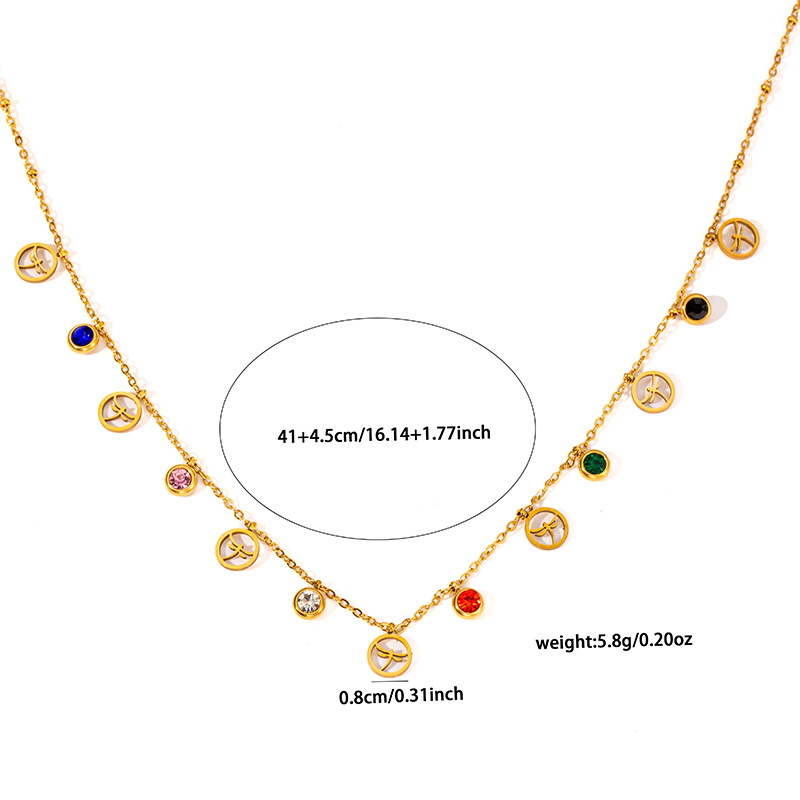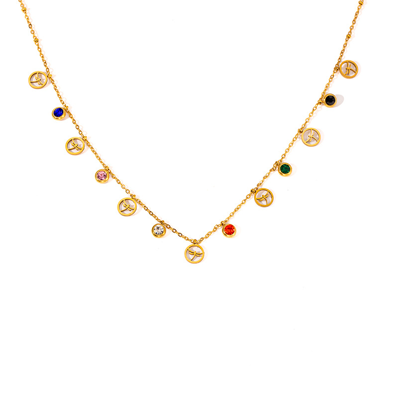 titanium steel color zircon dragonfly necklace