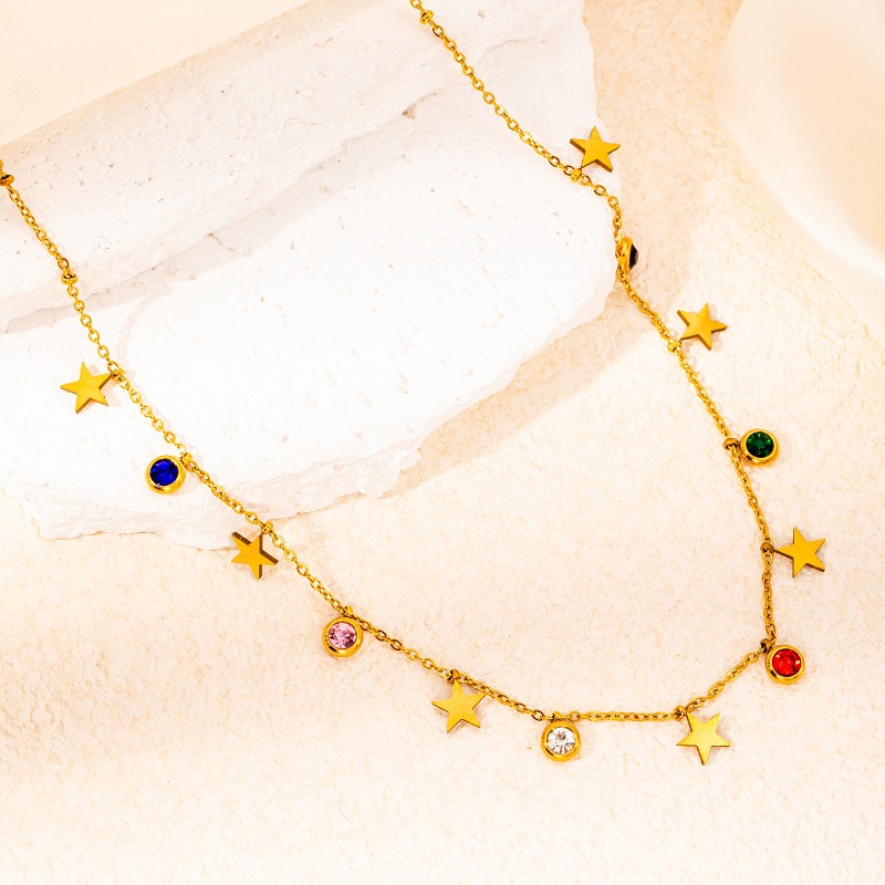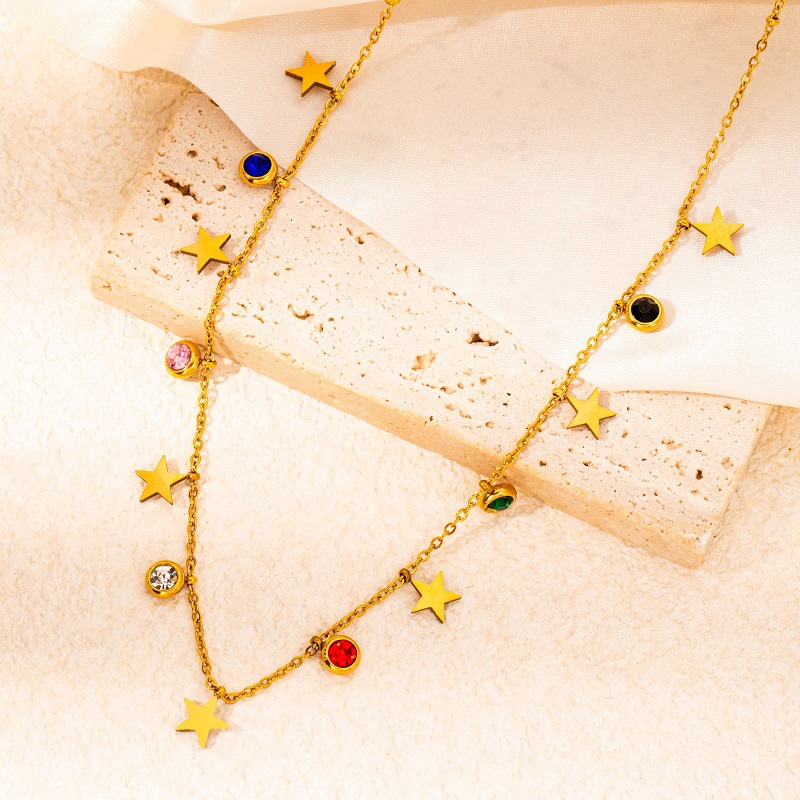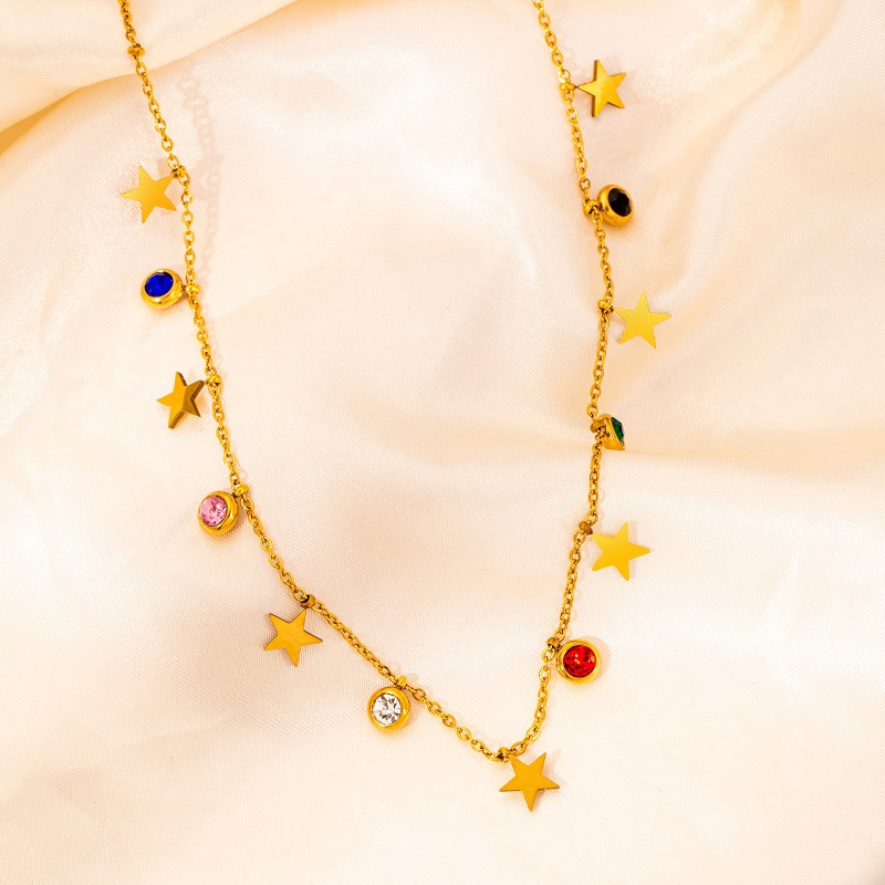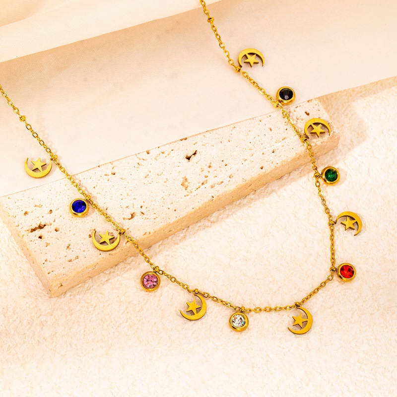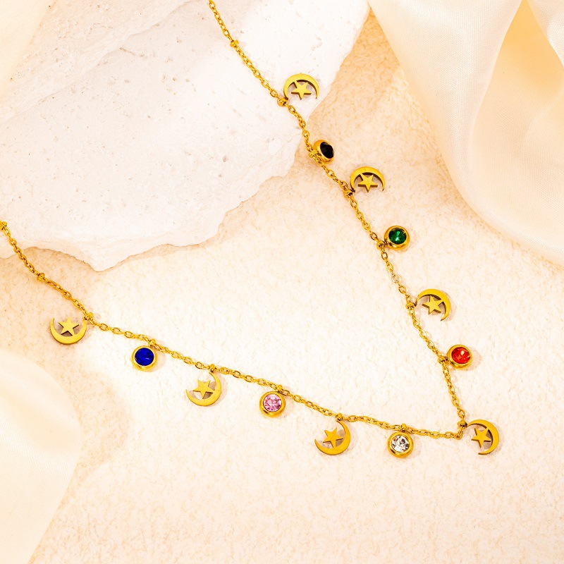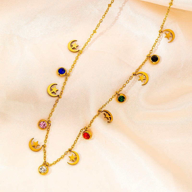 titanium steel color zircon star and moon necklace