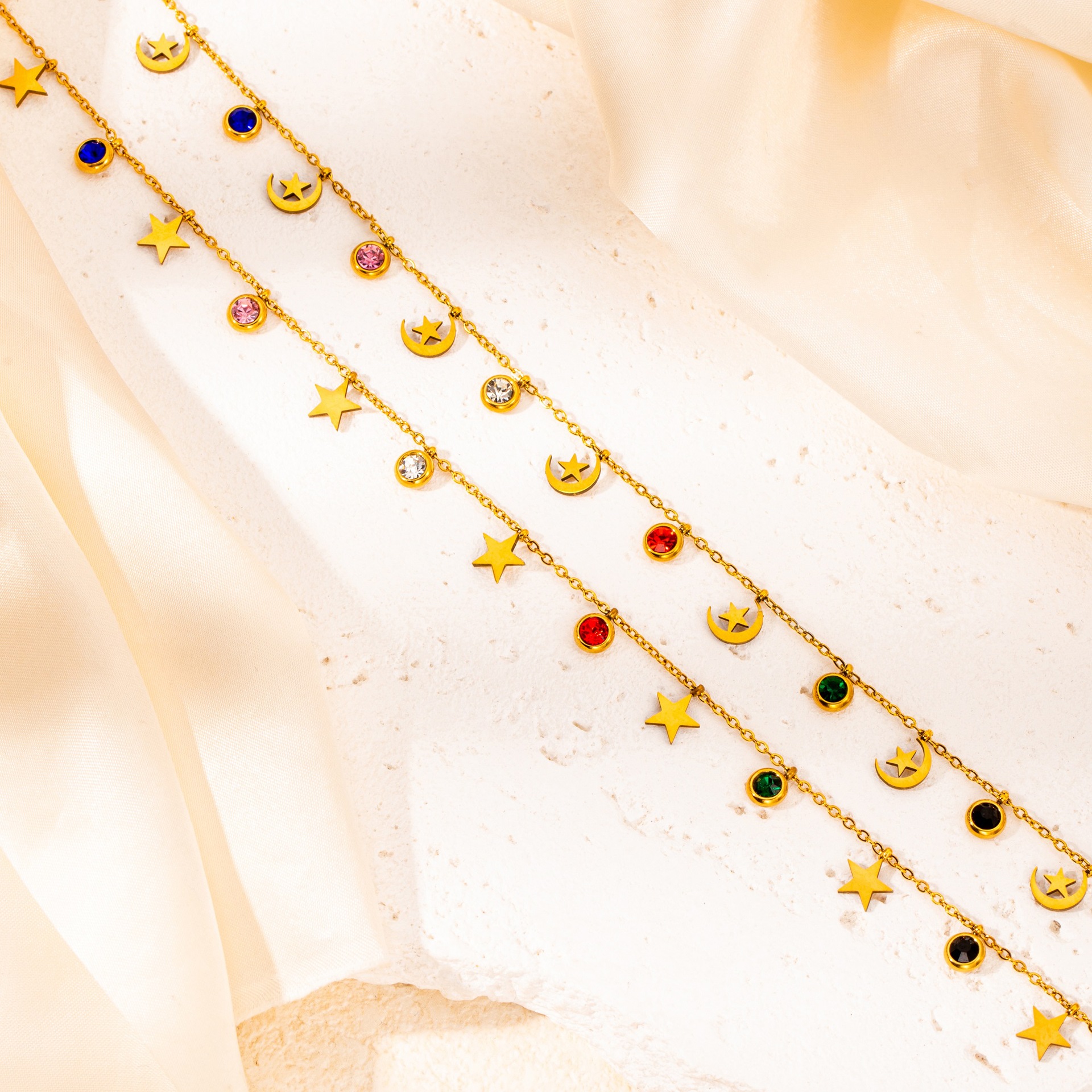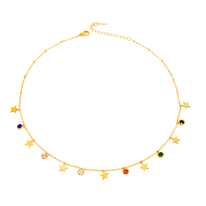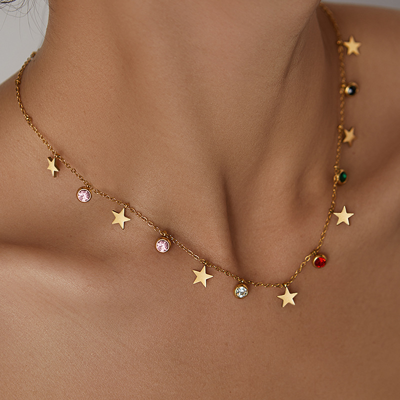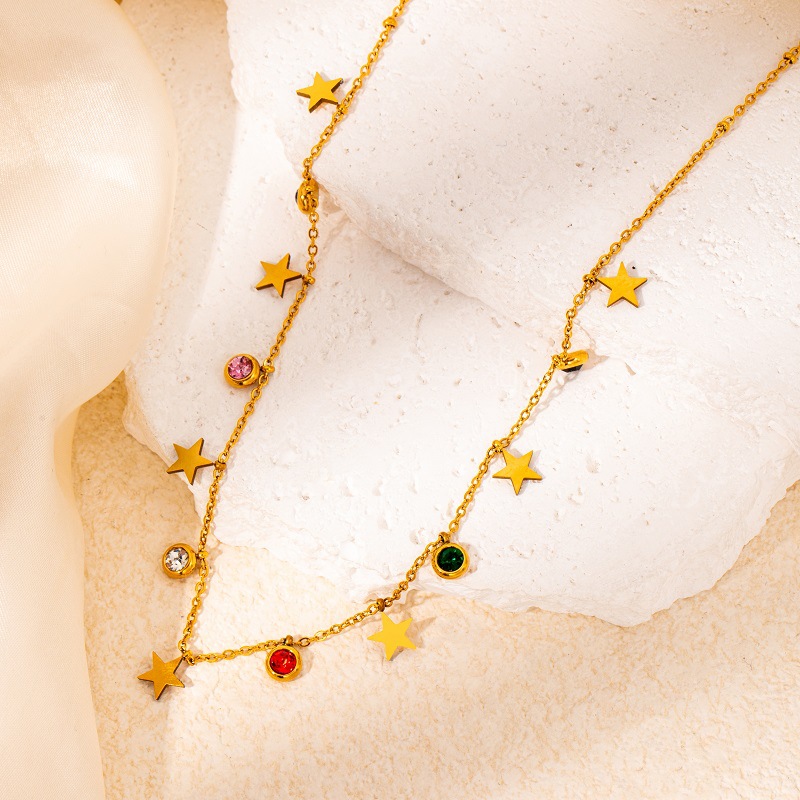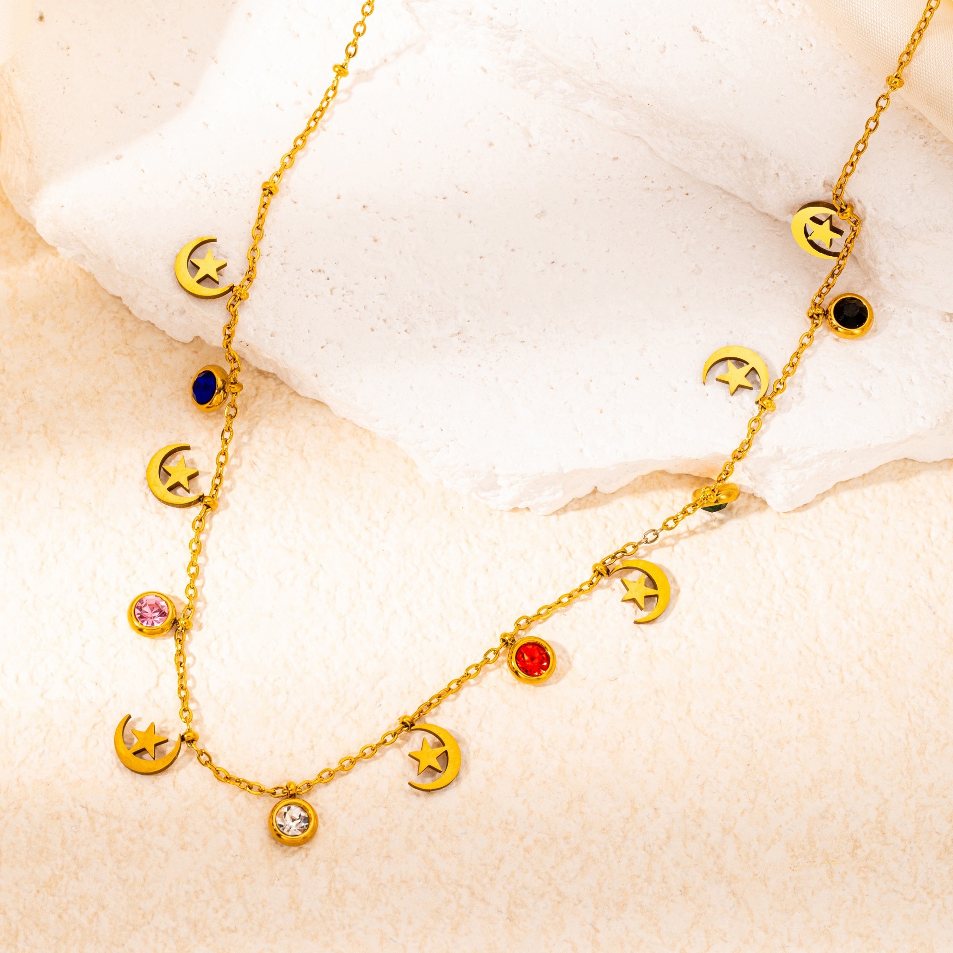 titanium steel color zircon star and moon necklace