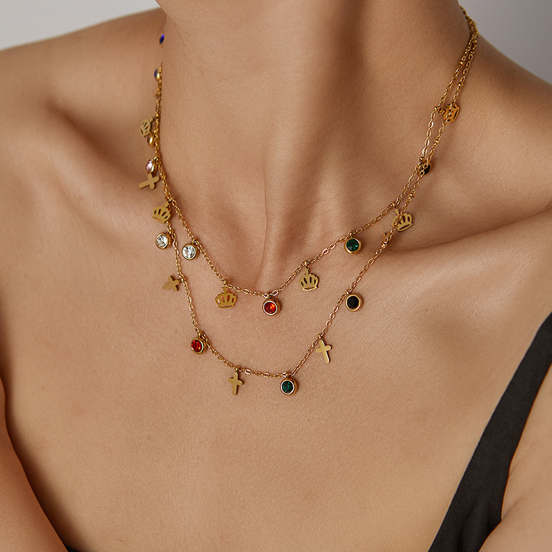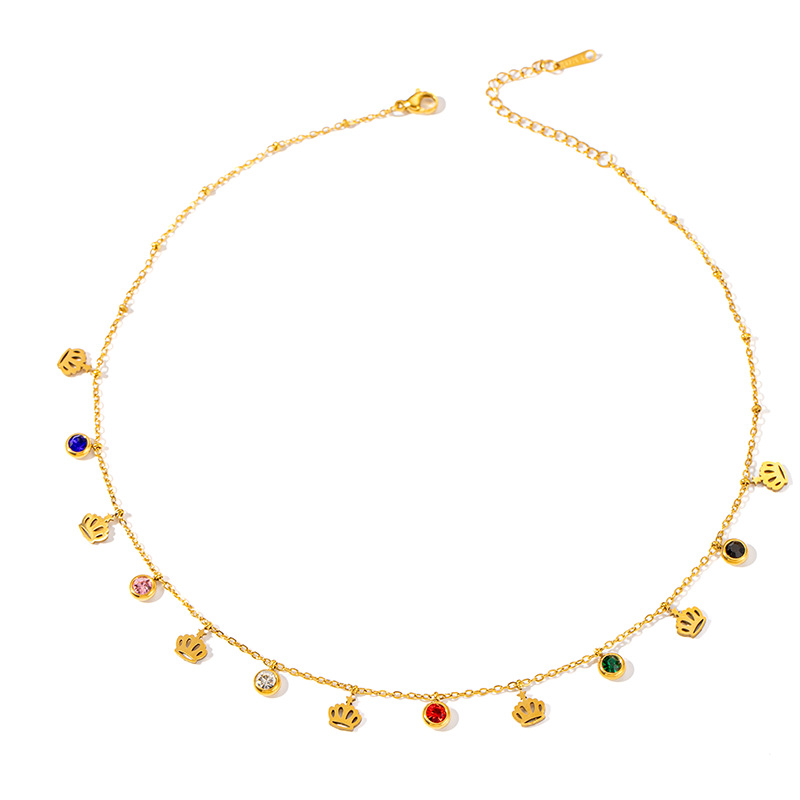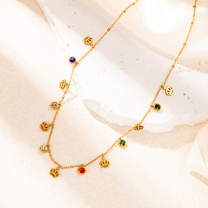 titanium steel color zircon crown necklace