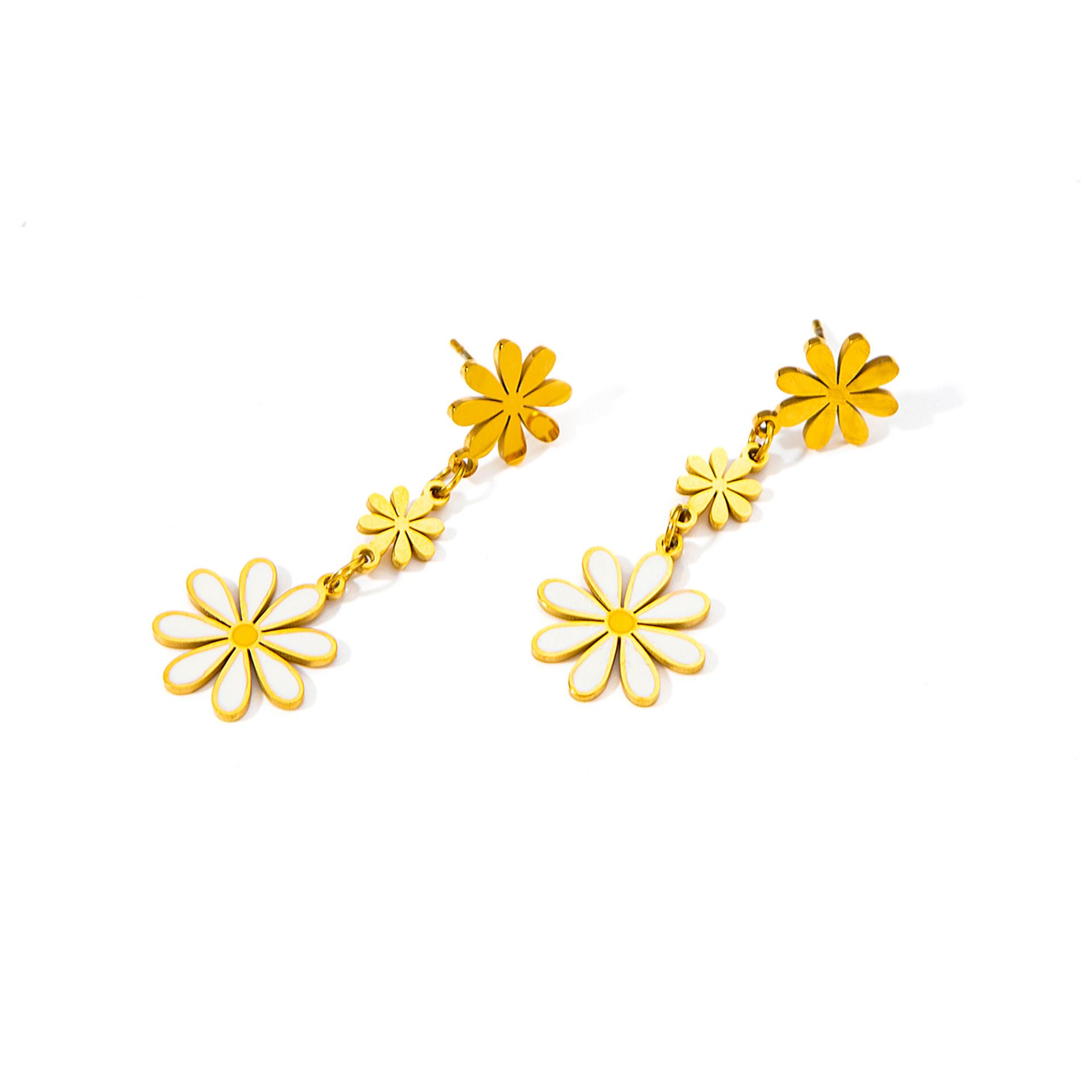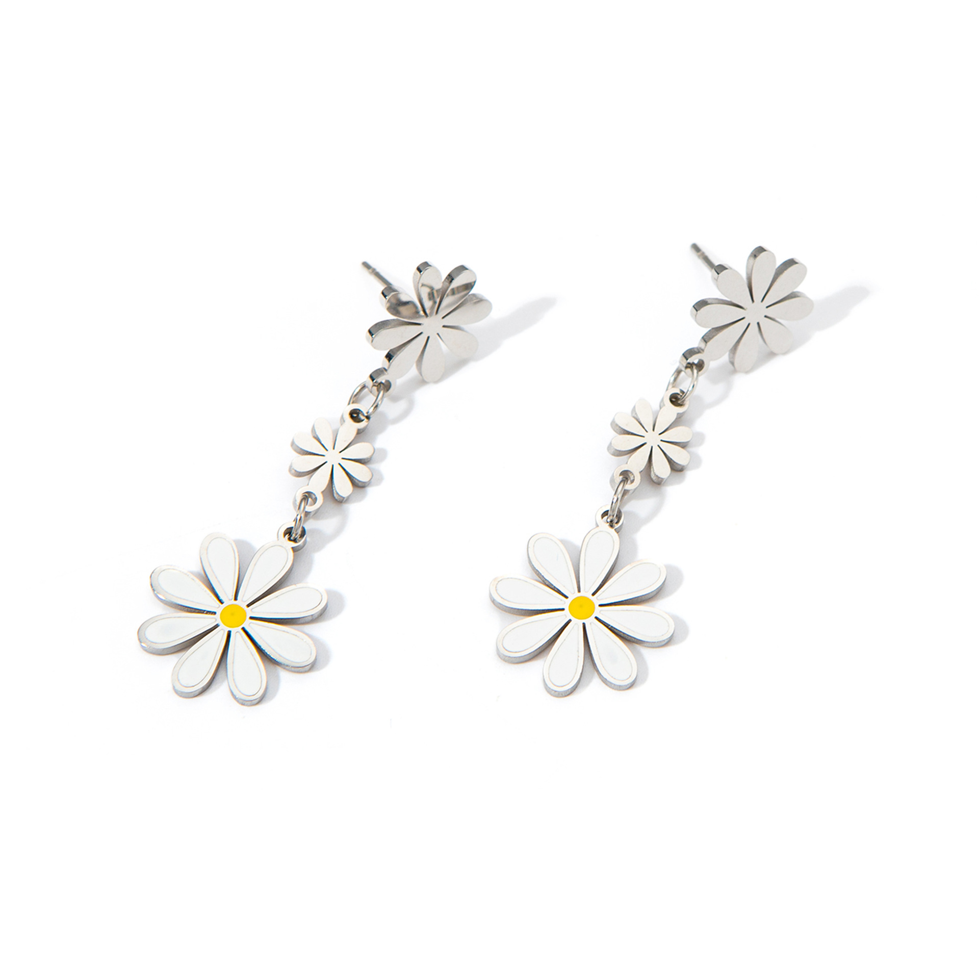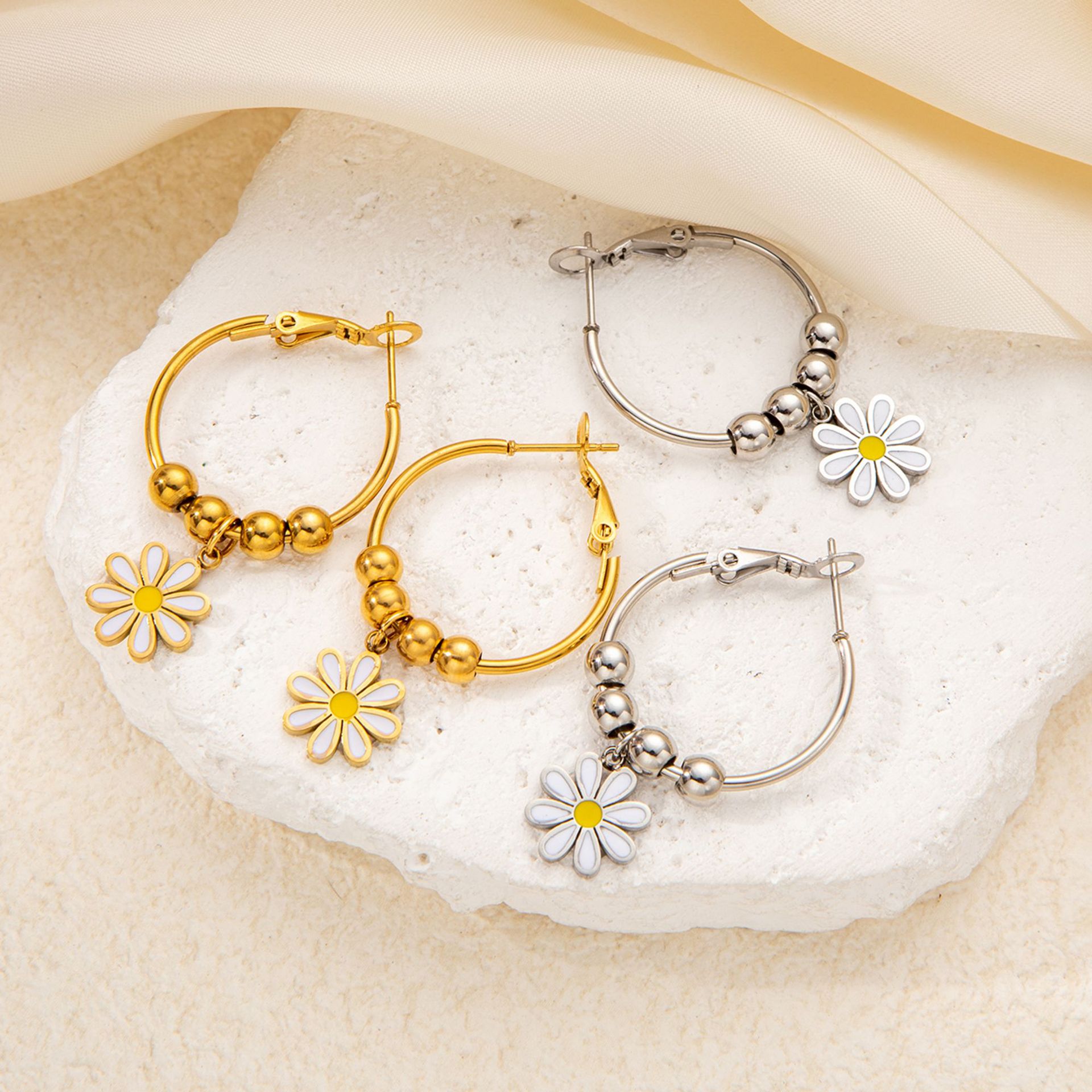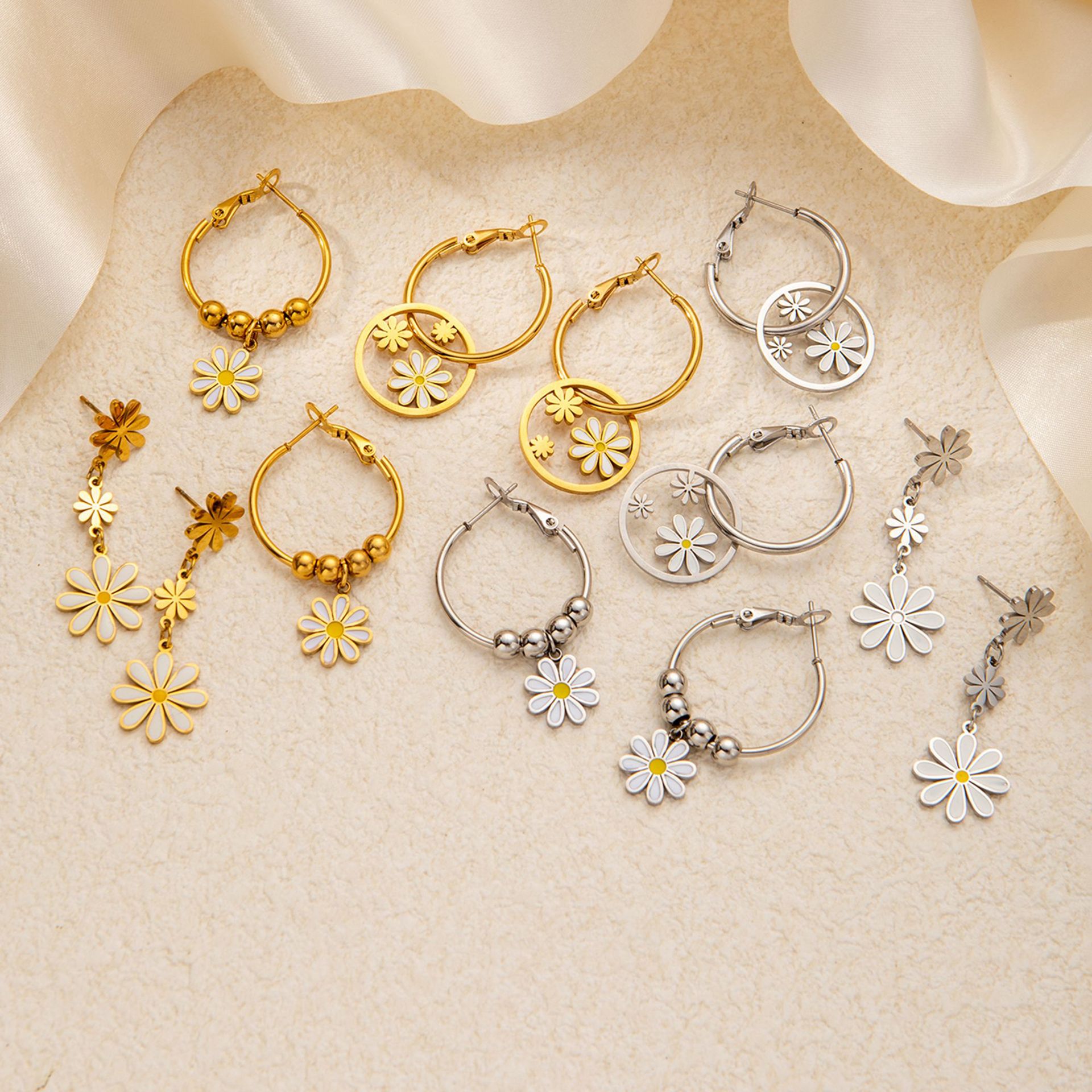 titanium steel large and small flower earrings in white gold color