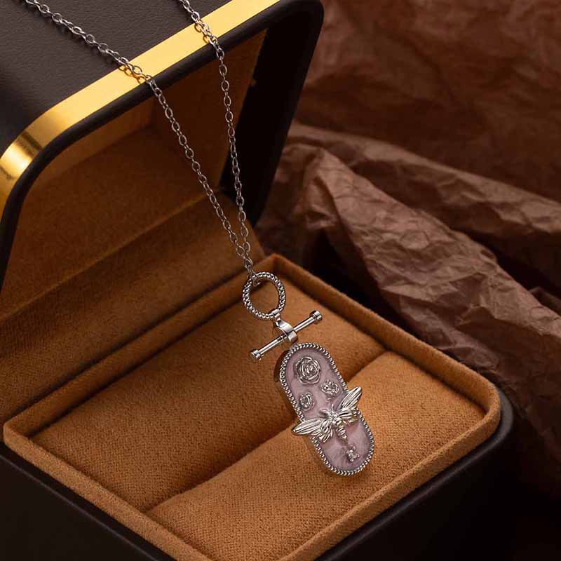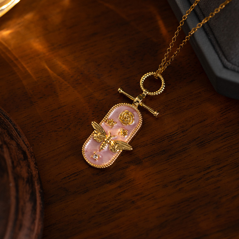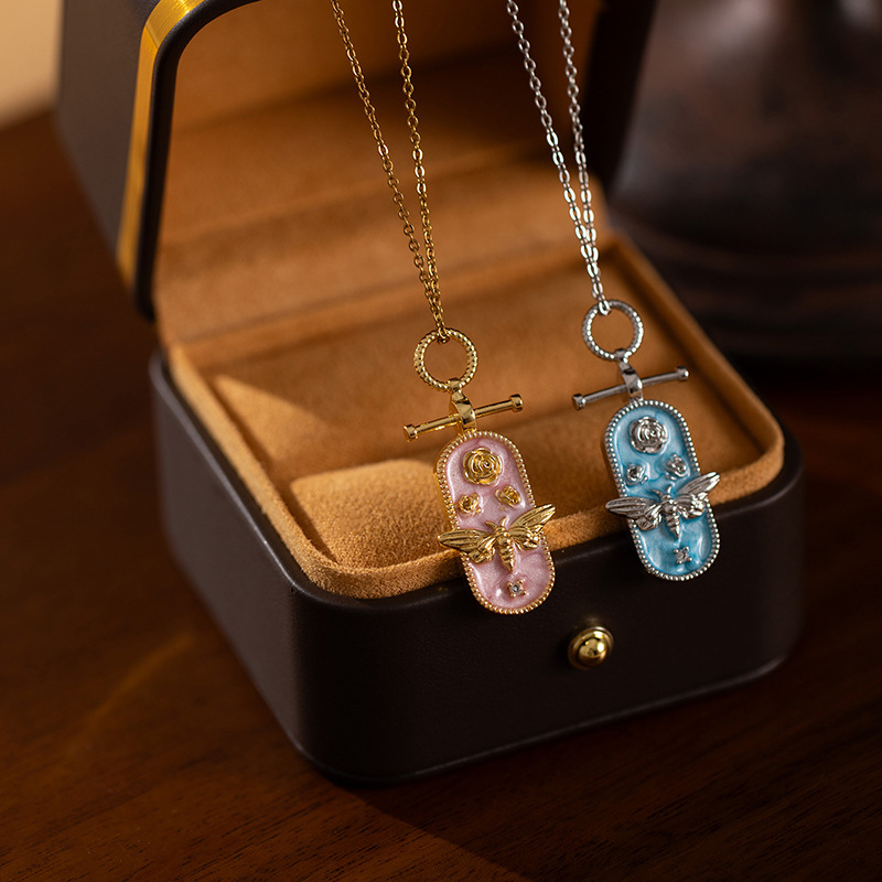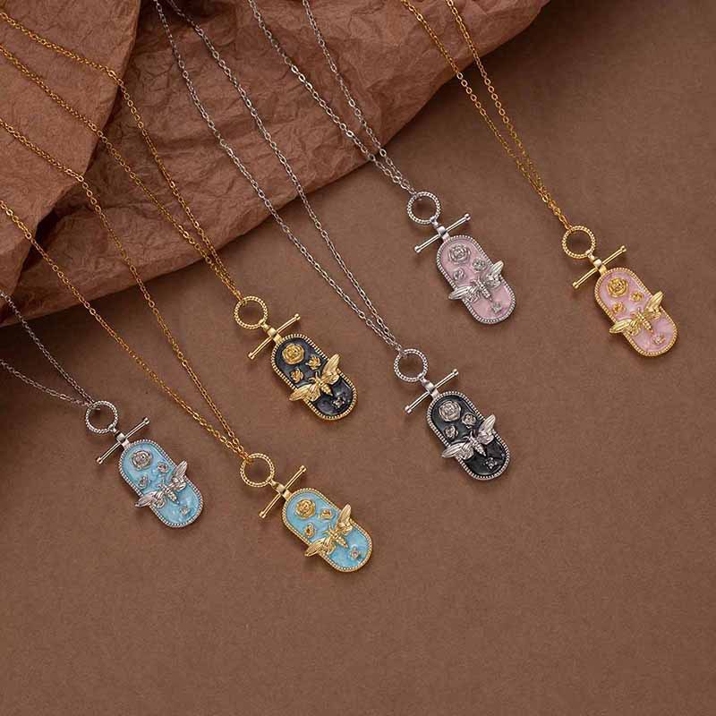 oval bee necklace-pink gold 0297