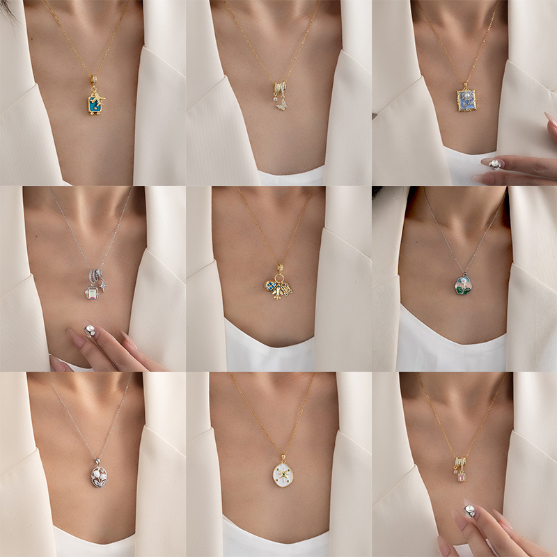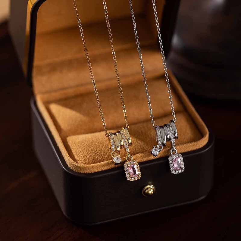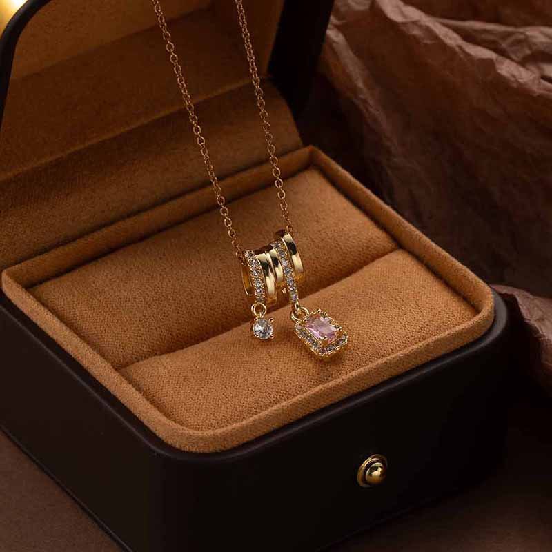 micro inlaid zircon cube sugar color necklace-gold 0299
