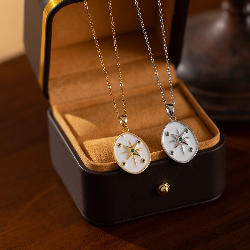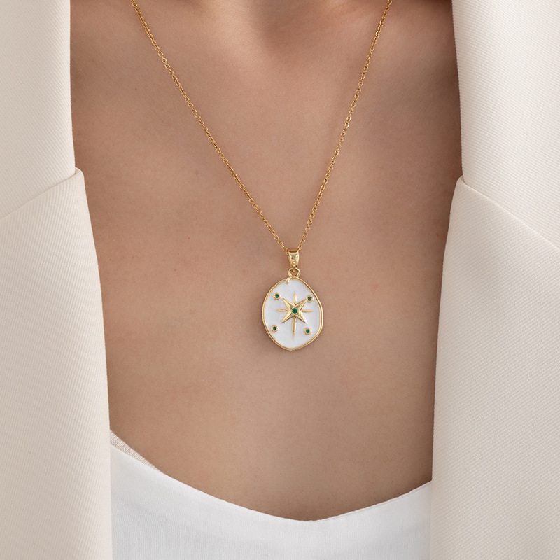 zircon circle eight-pointed stars necklace-gold 0298