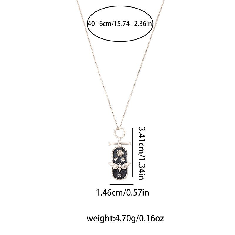 oval bee necklace-silver black 0297
