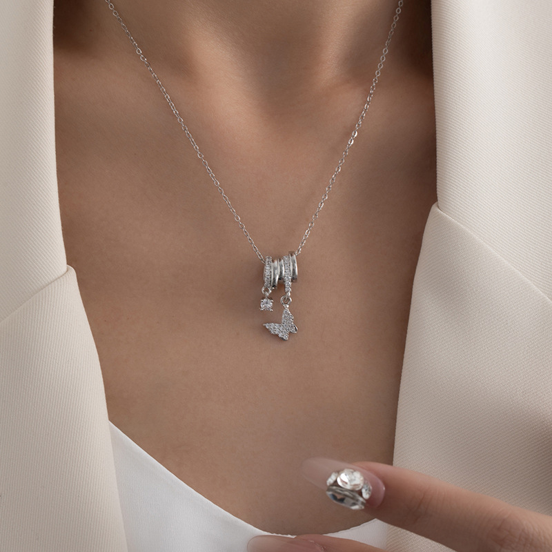 butterfly pendant necklace-silver 0302