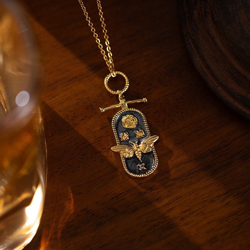 oval bee necklace-black gold 0297