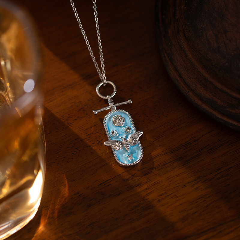 oval bee necklace-silver blue 0297