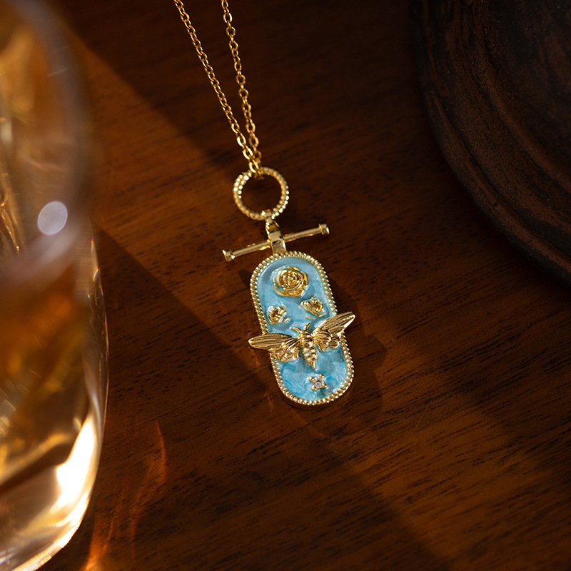 oval bee necklace-golden blue 0297
