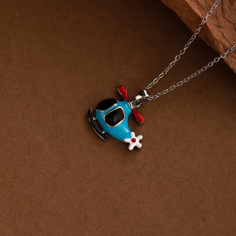 blue airplane pendant necklace 0312
