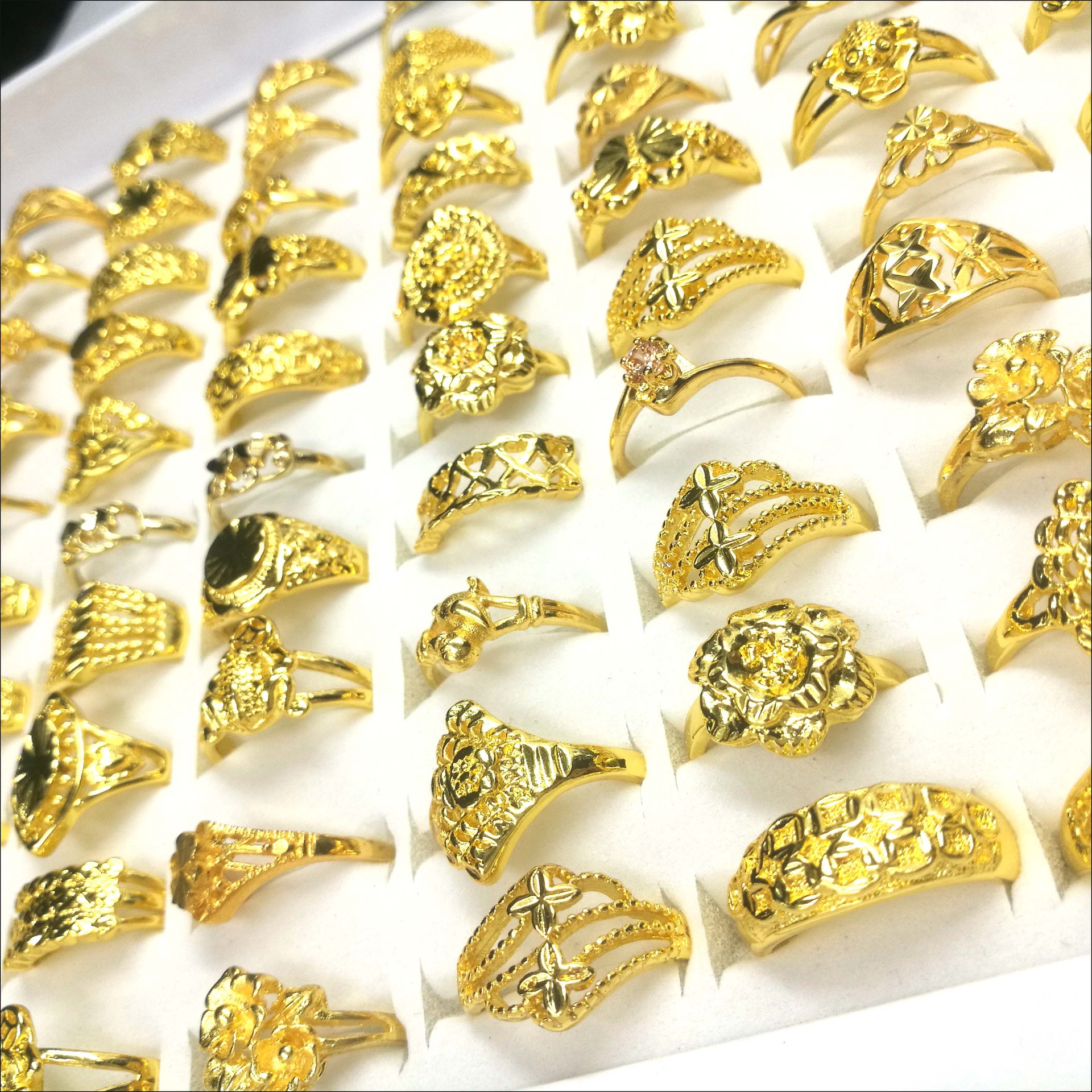 korean style women's high imitation 24k gold ring imitation gold ring finger gold plated ring stall hot sale popular ornament wholesale