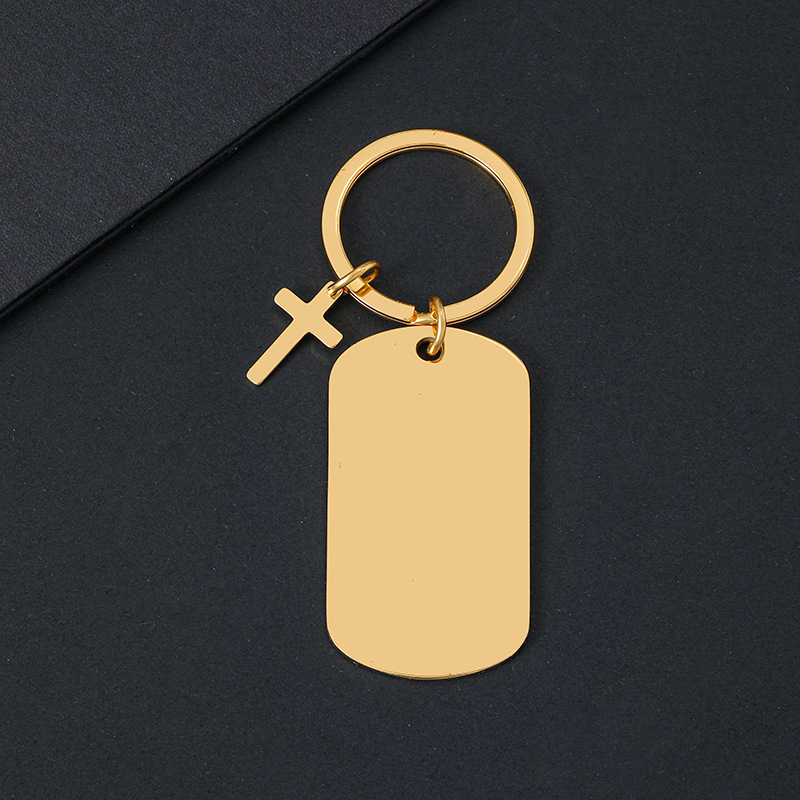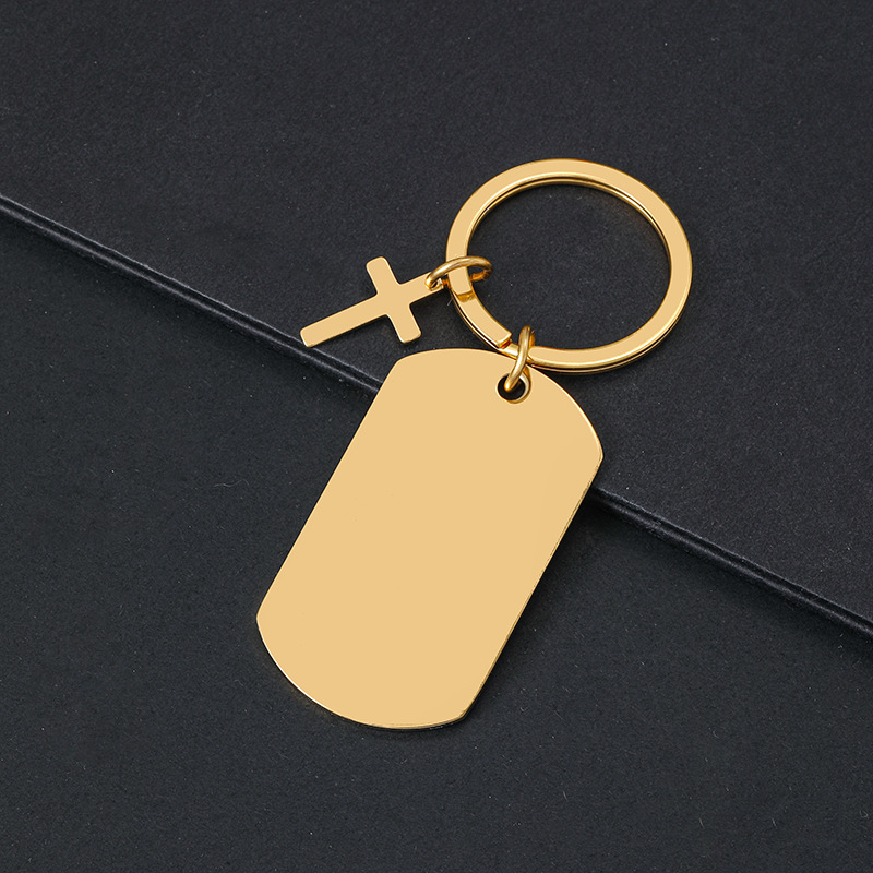 50 * 28mm dog tag + cross + keychain + overall gold