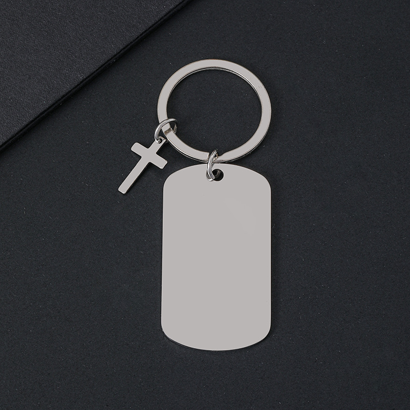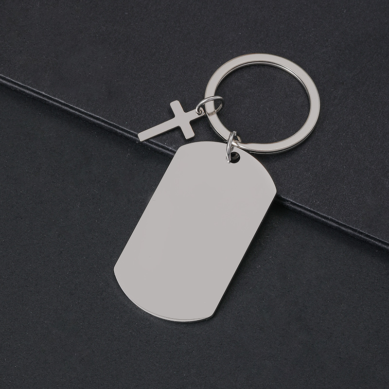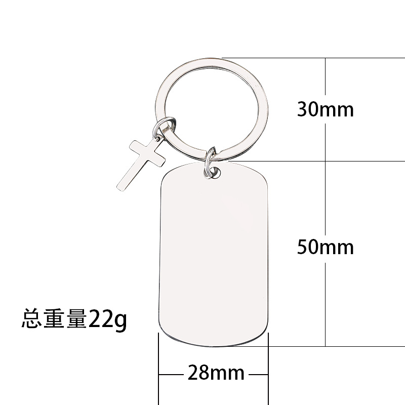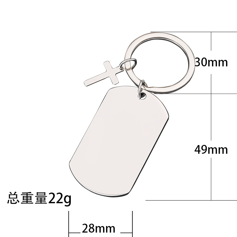 50 * 28mm dog tag + cross + keychain + overall silver