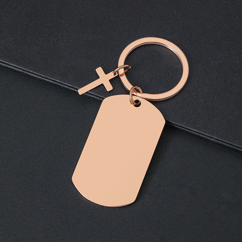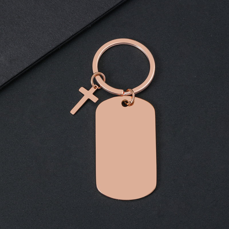 50 * 28mm dog tag + cross + keychain + overall rose gold