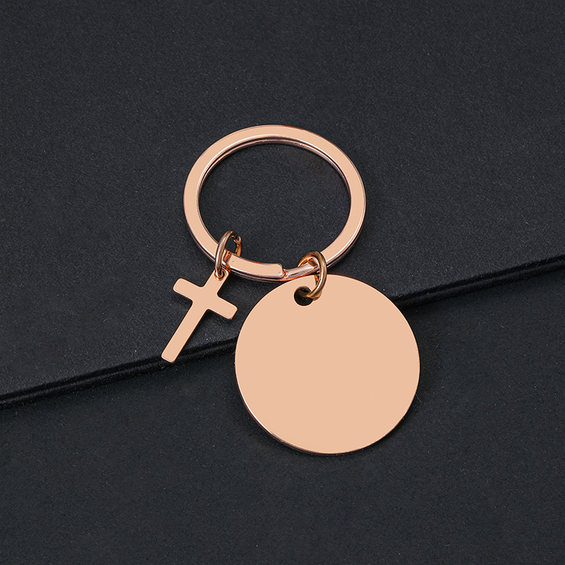 30mm inner hole round + cross + key ring overall rose gold