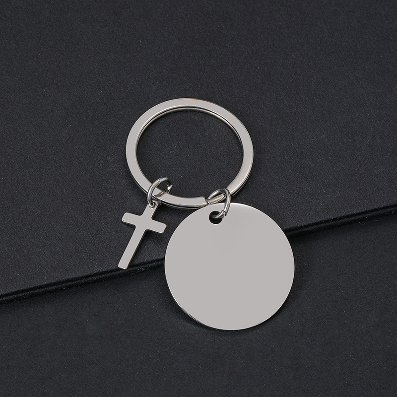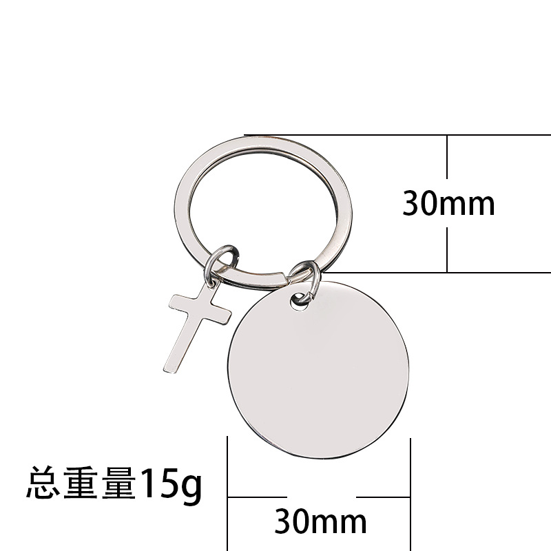 30mm inner hole round + cross + key ring overall silver
