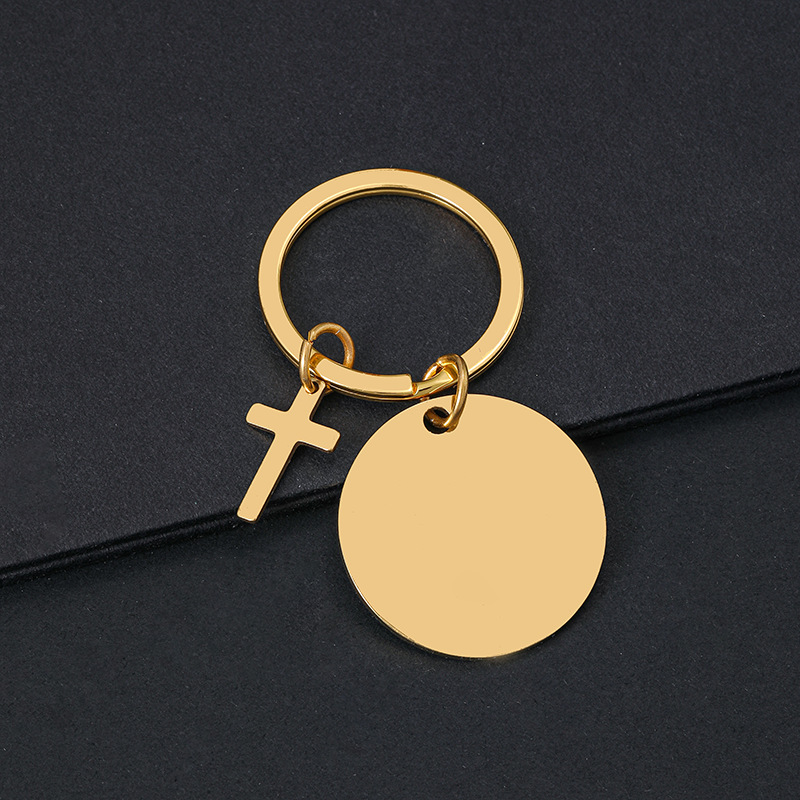 30mm inner hole round + cross + key ring overall gold