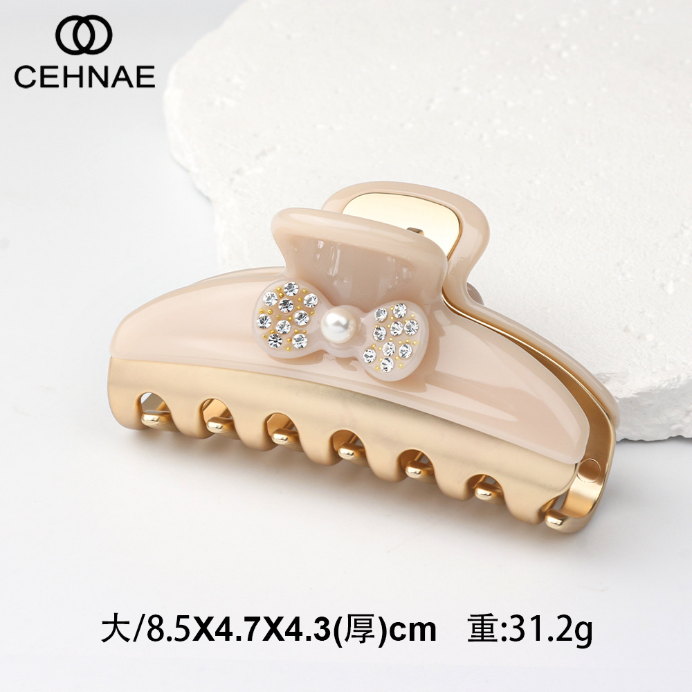 2569-oversized beige pearl bow