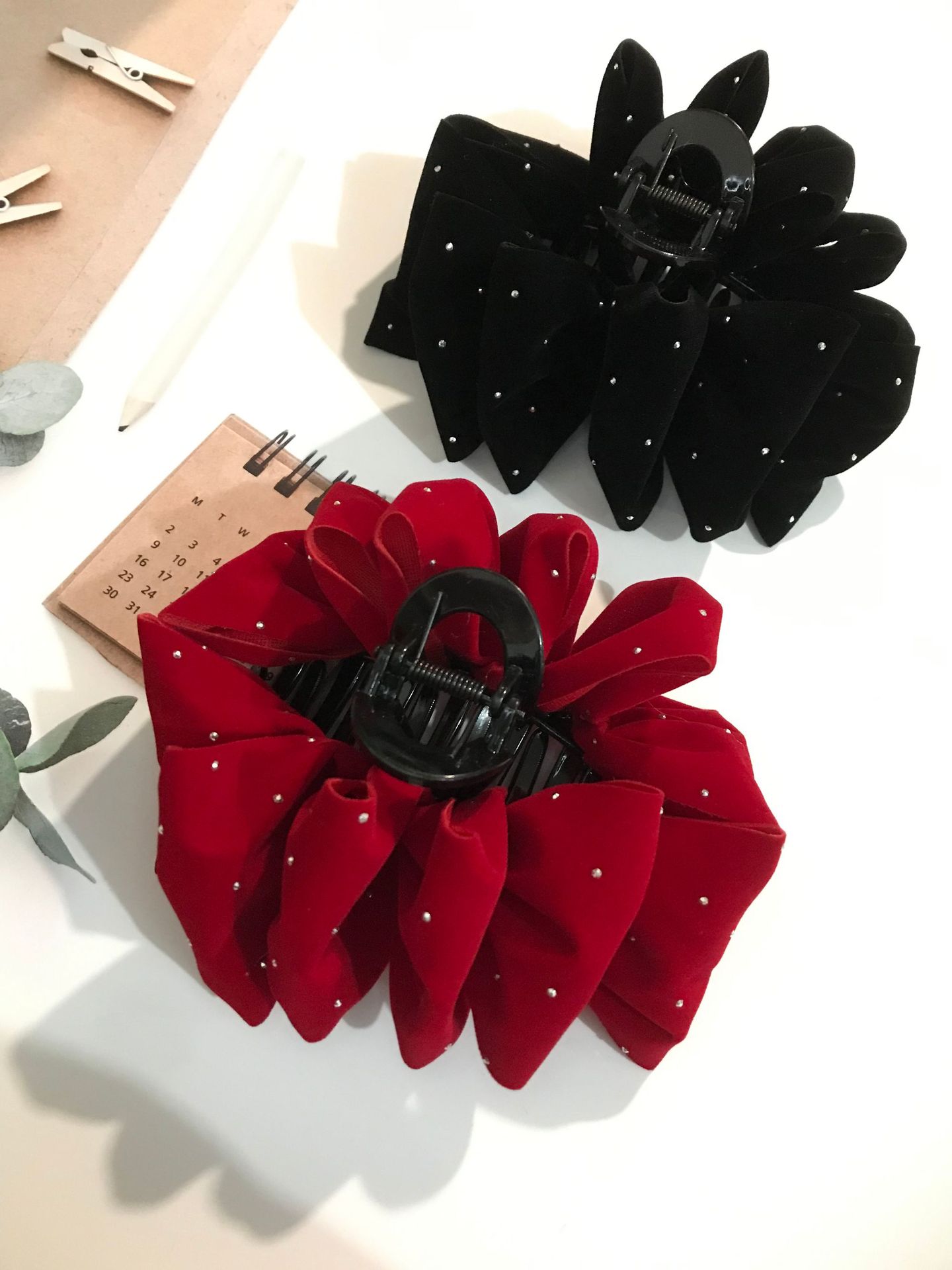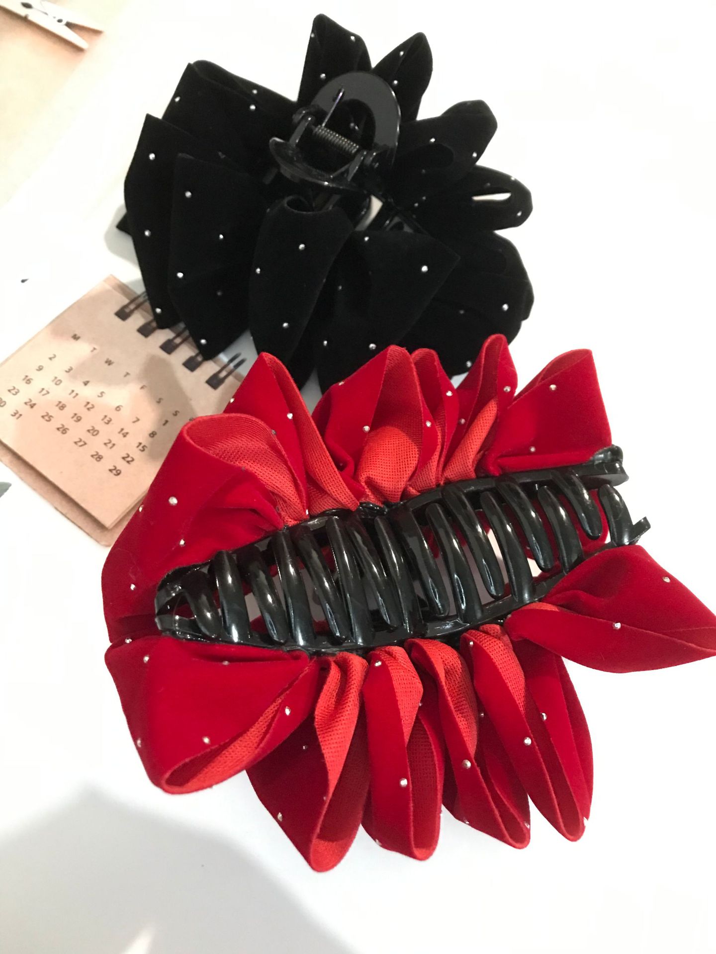 a174 velvet starry sky bow claw clip red