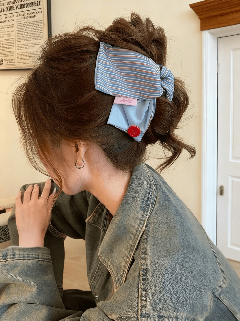 blue striped button grip
