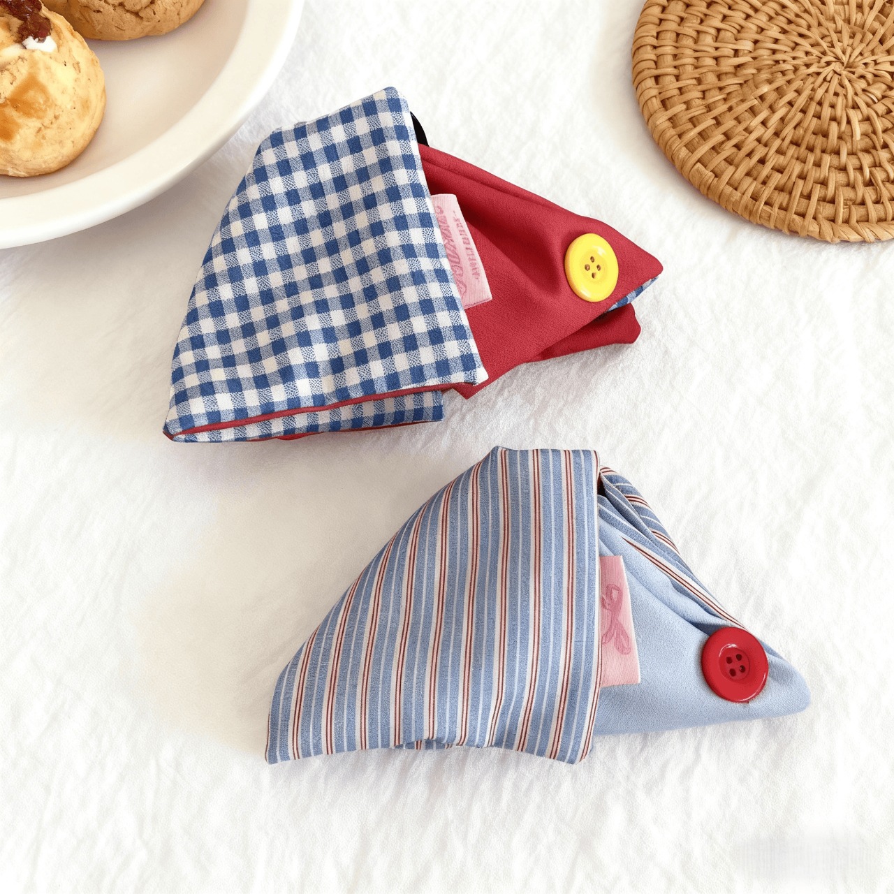 red and blue plaid button grip