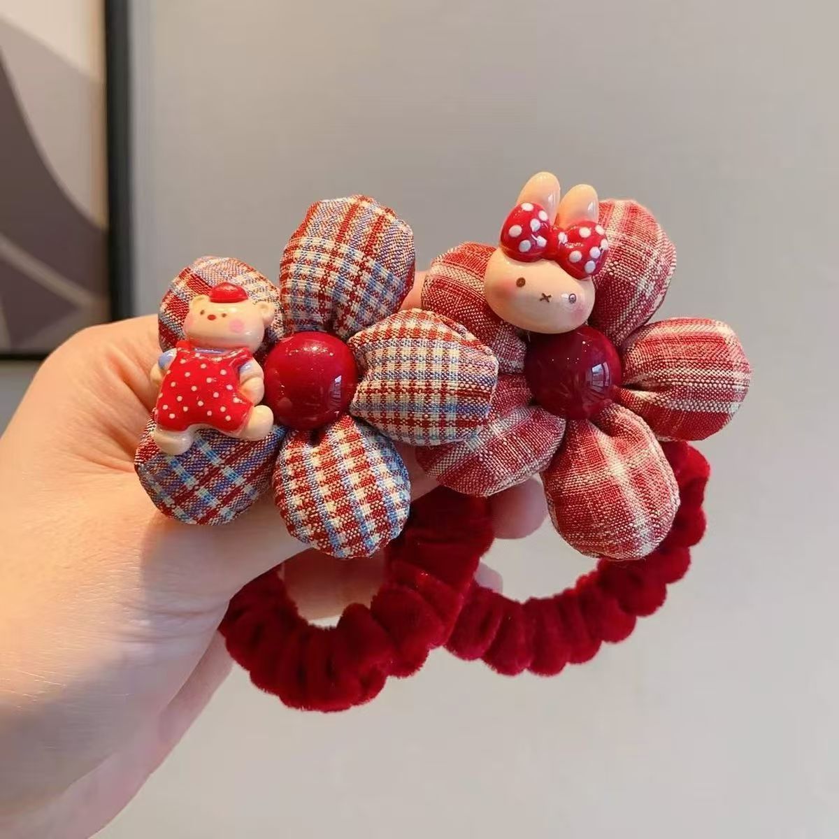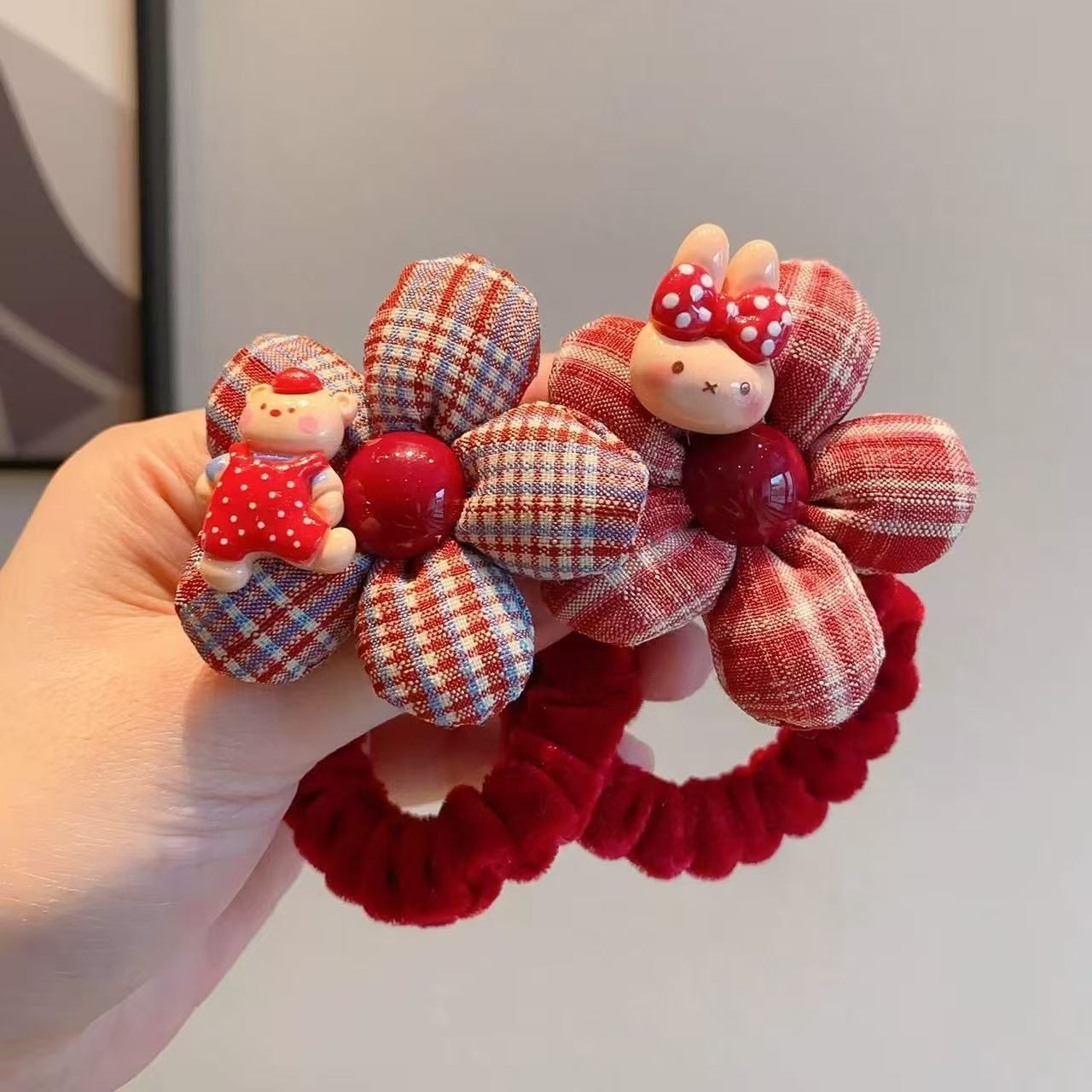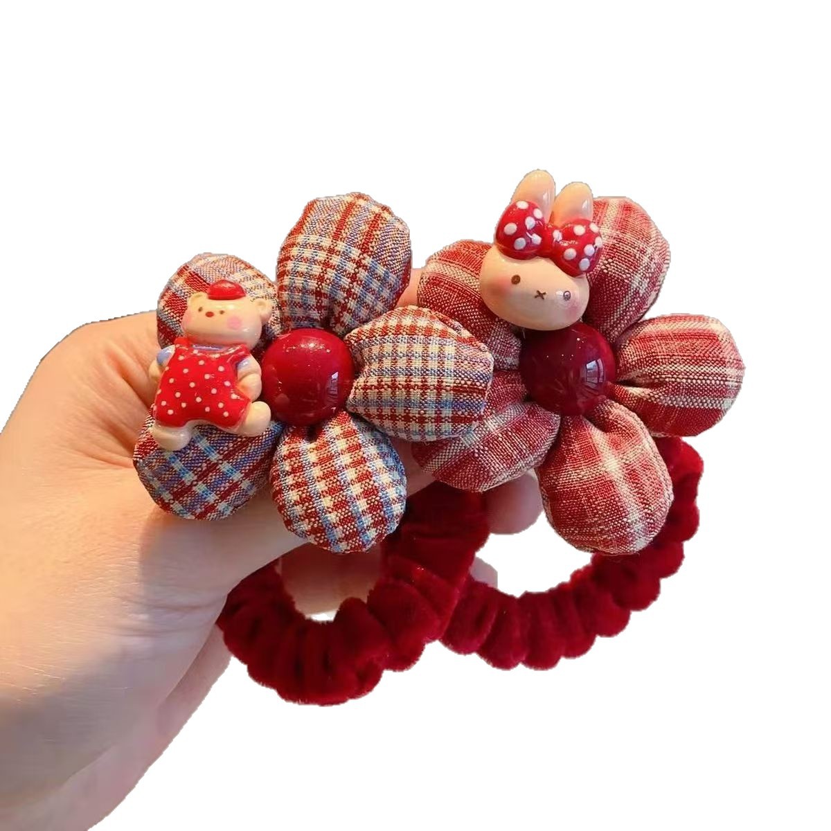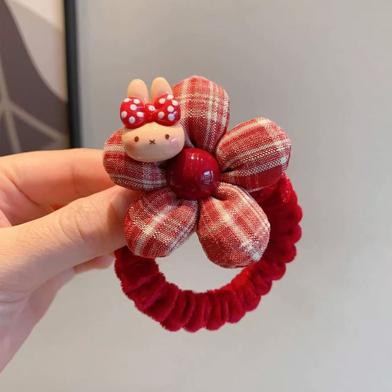 rabbit flower red hair ring