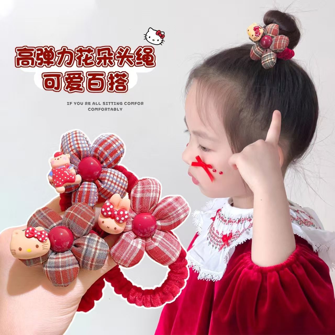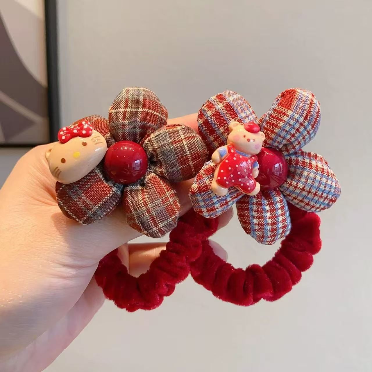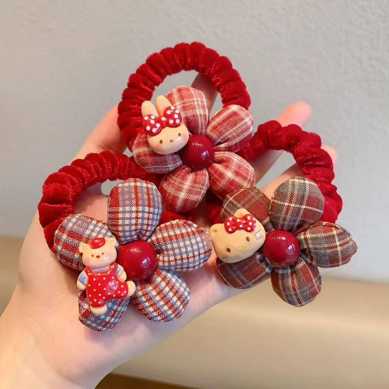 bear flower red hair ring