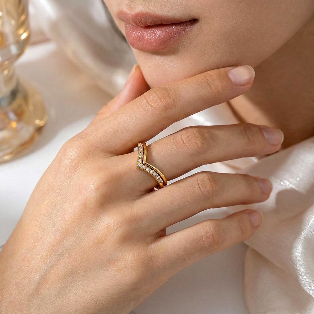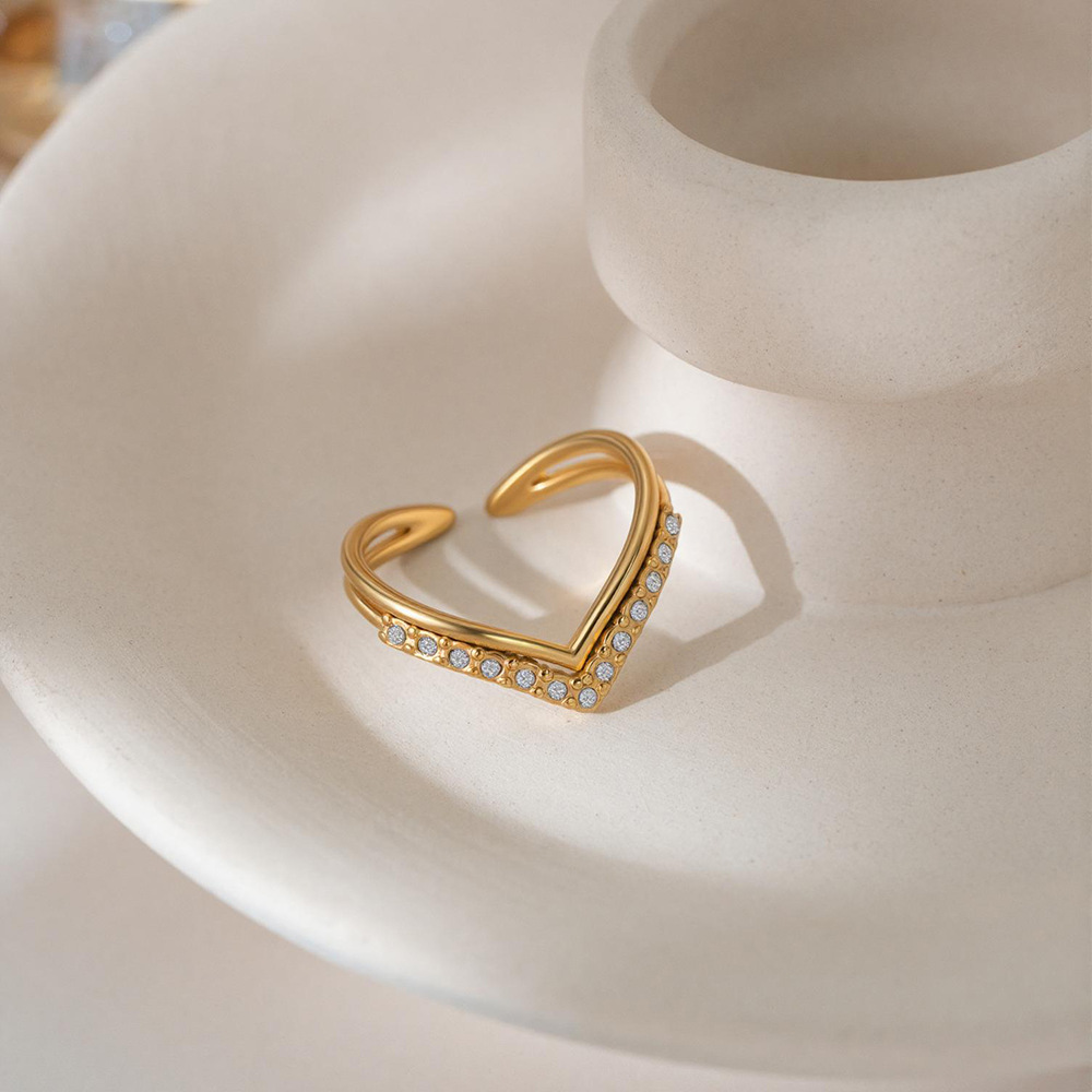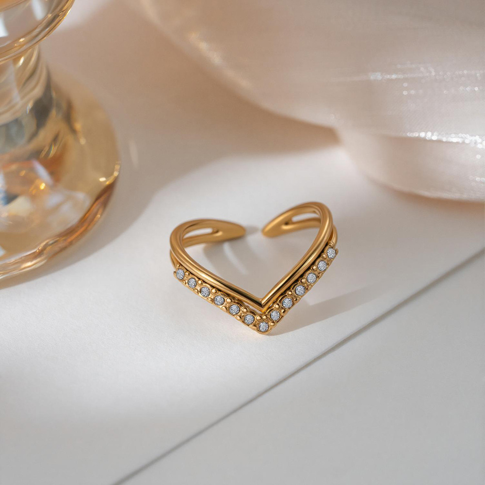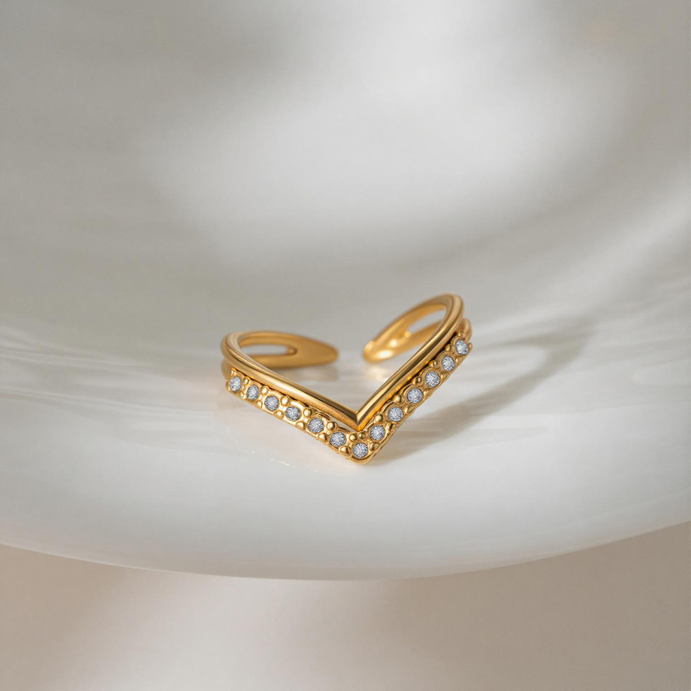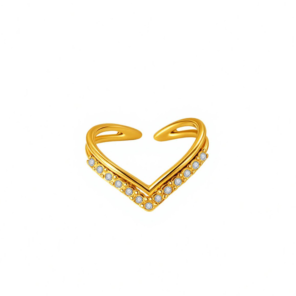gold v-shaped full diamond ring
