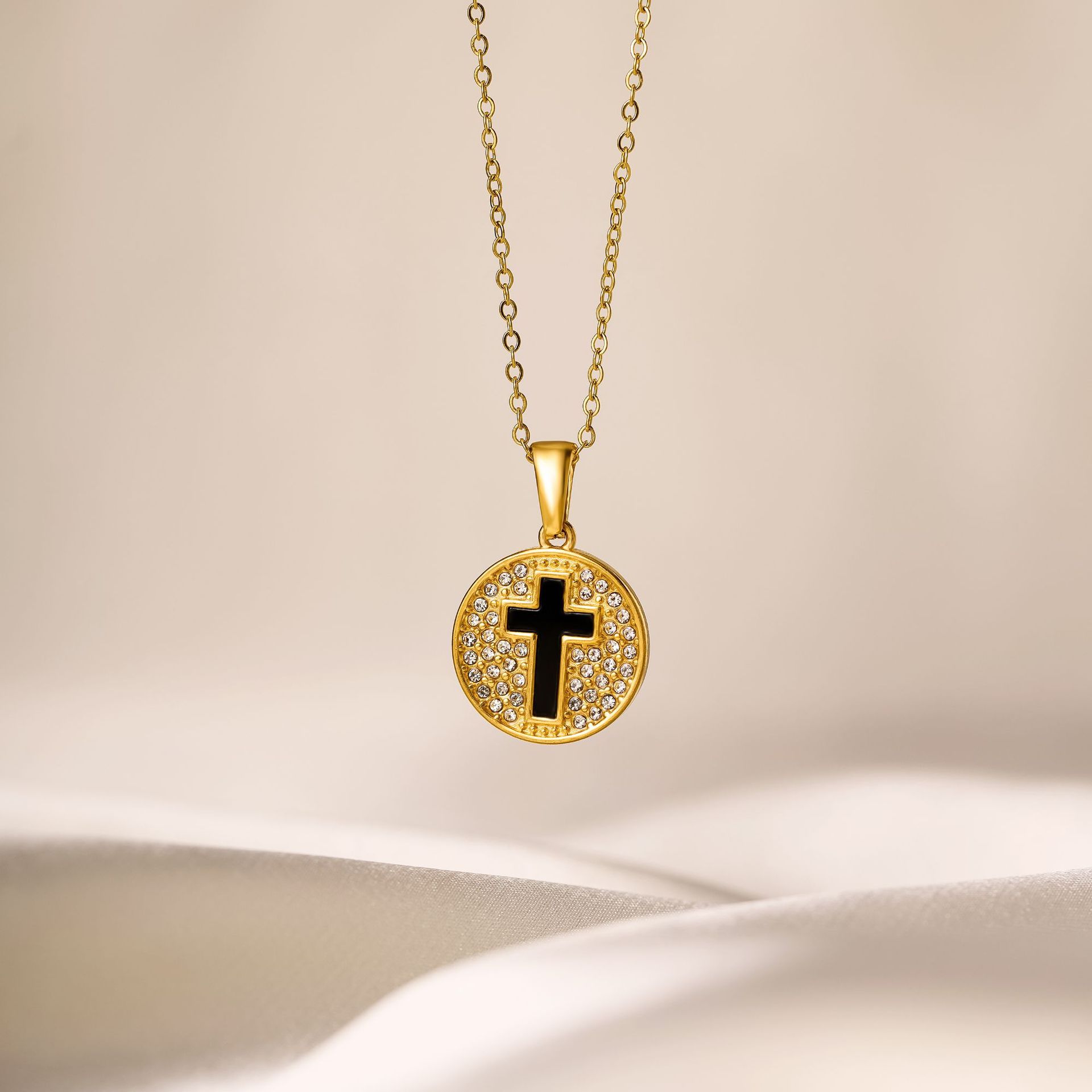 gold diamond black oil cross necklace