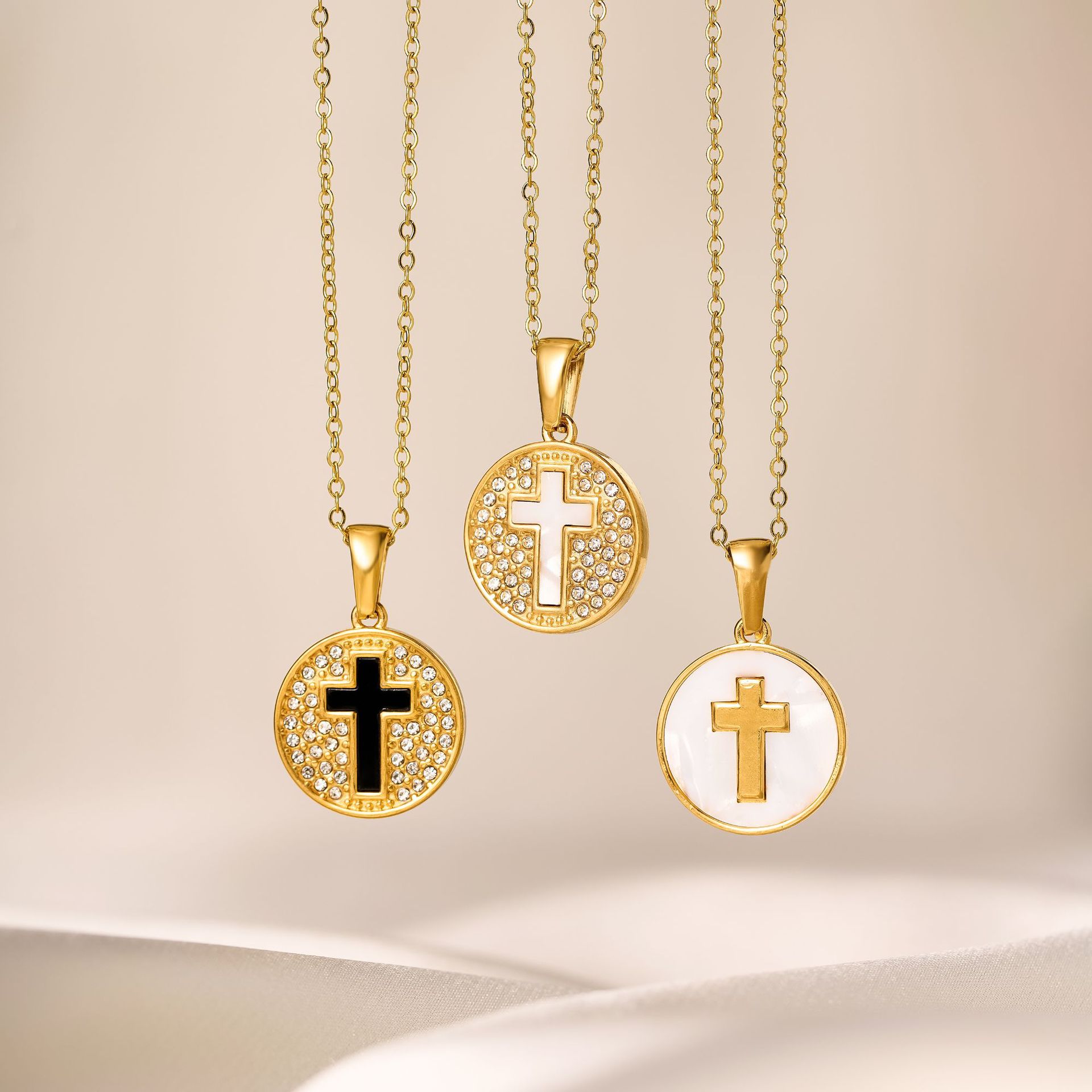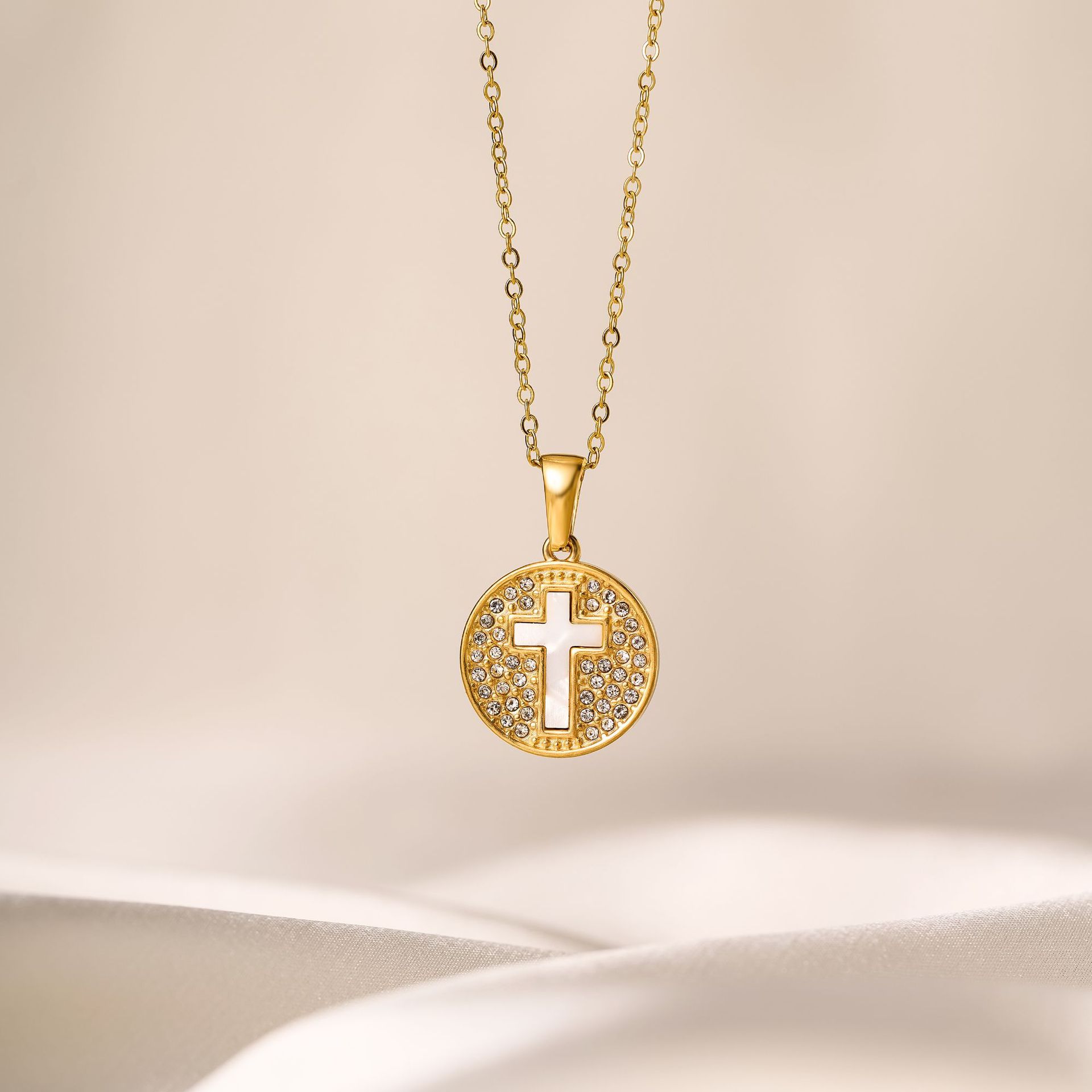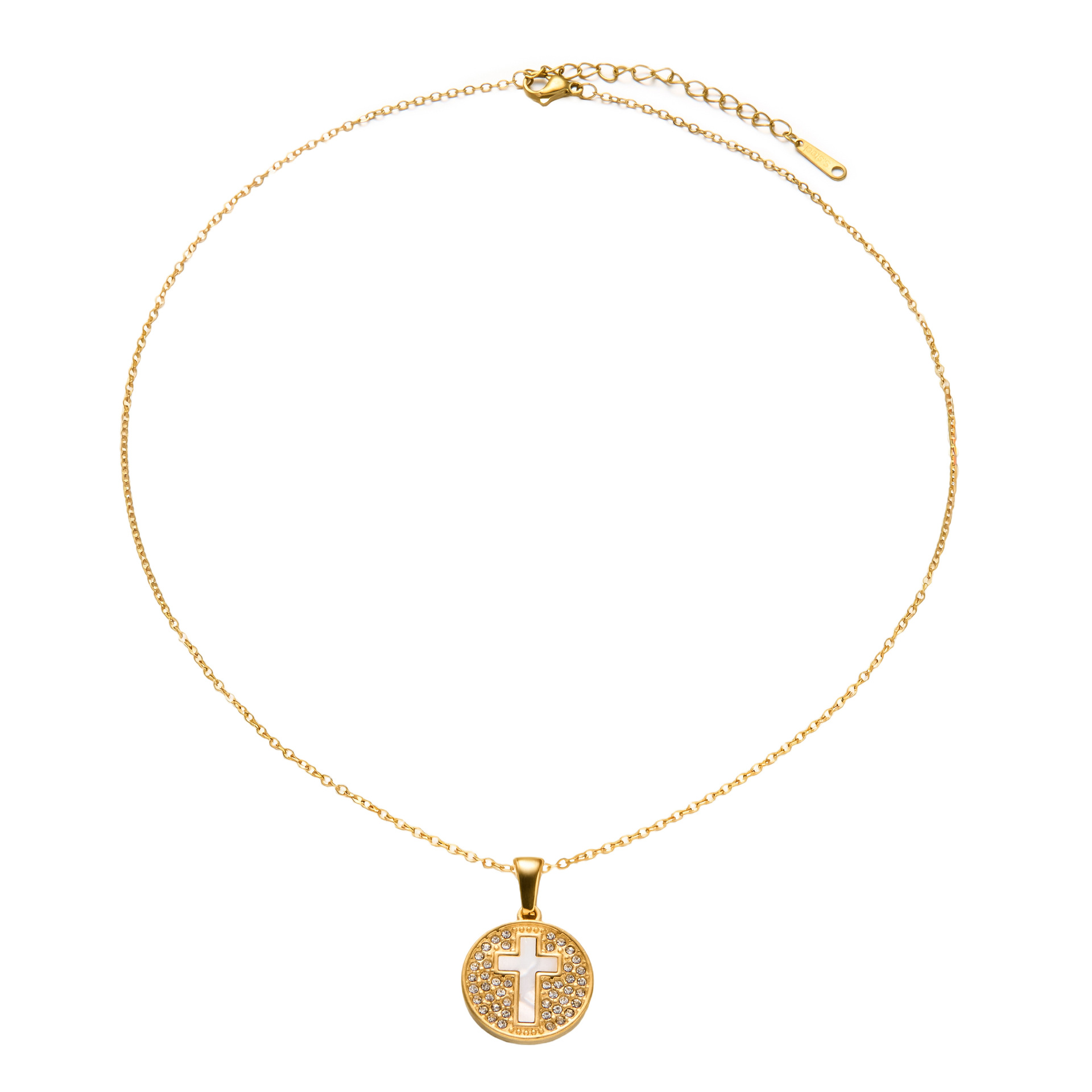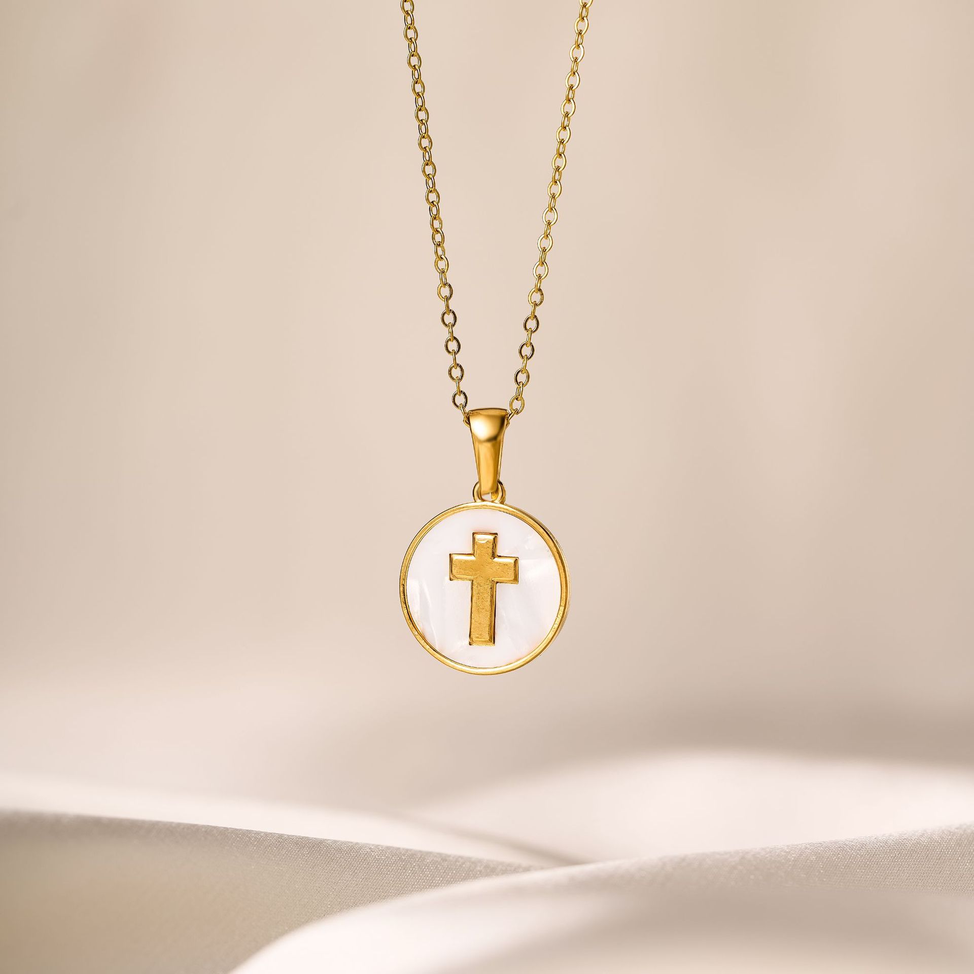 gold white shell cross necklace