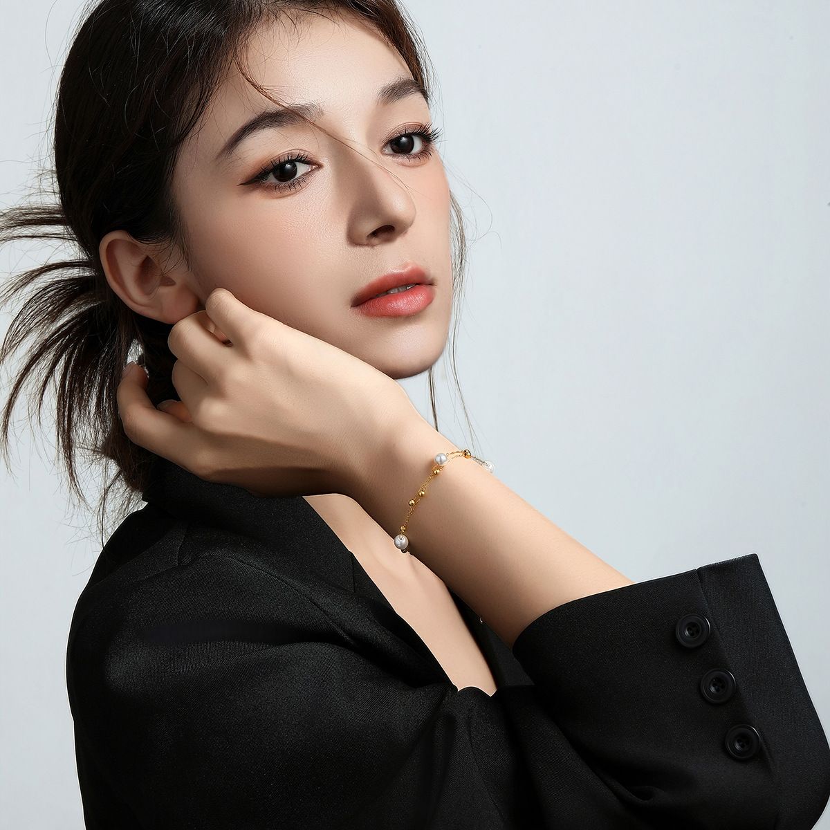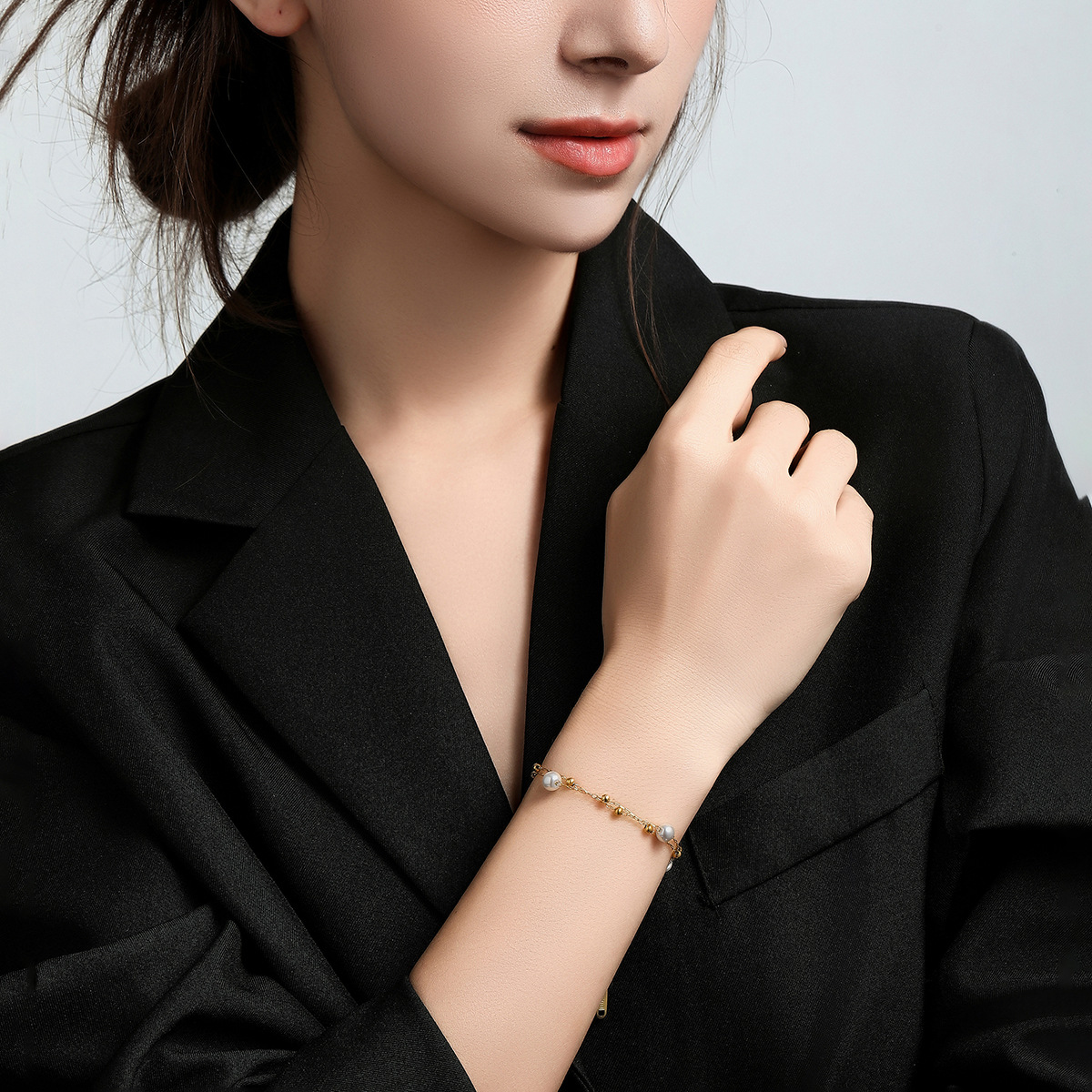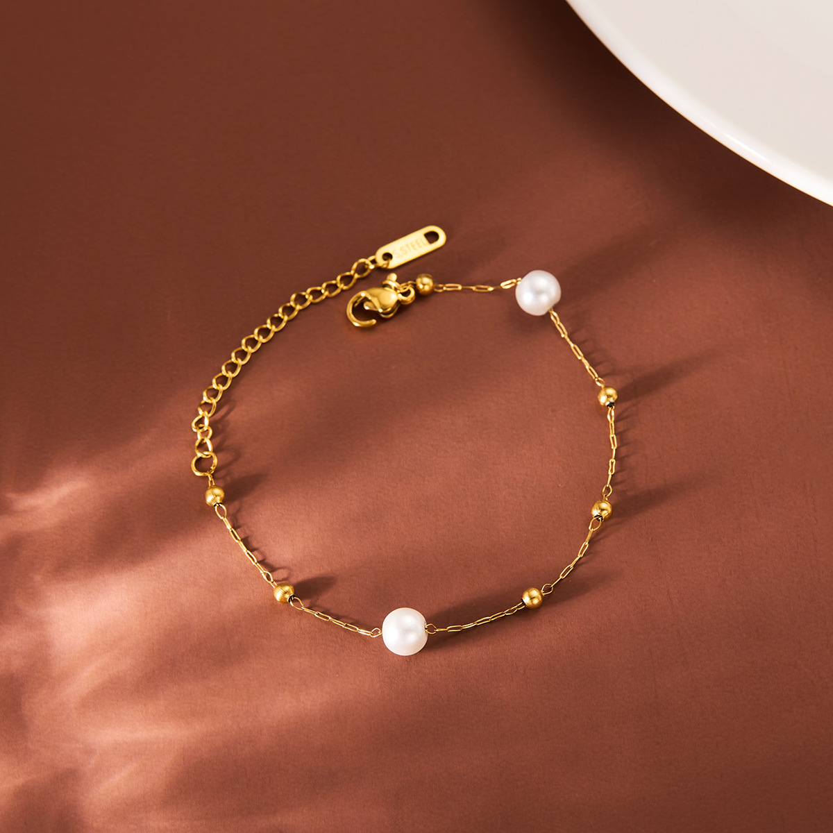golden-single layer-white pearl bracelet