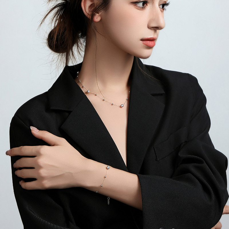 steel color-single layer-gray beads bracelet