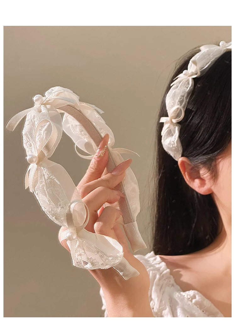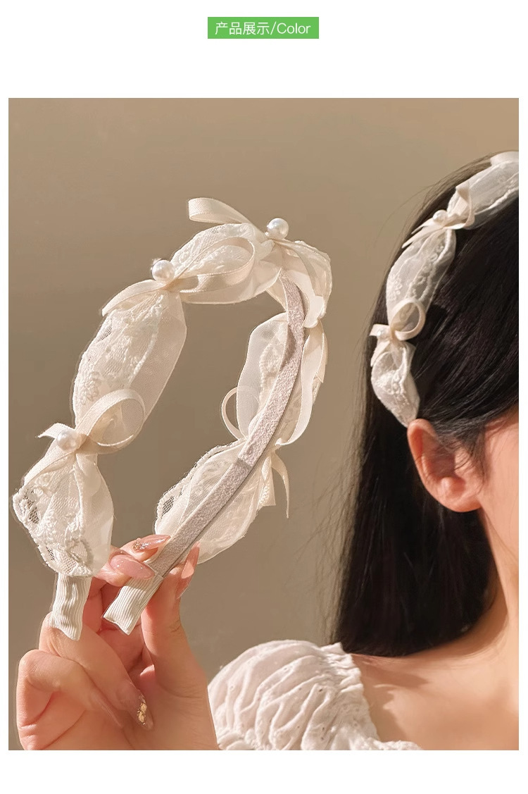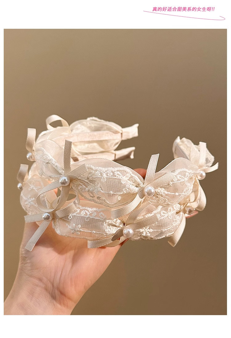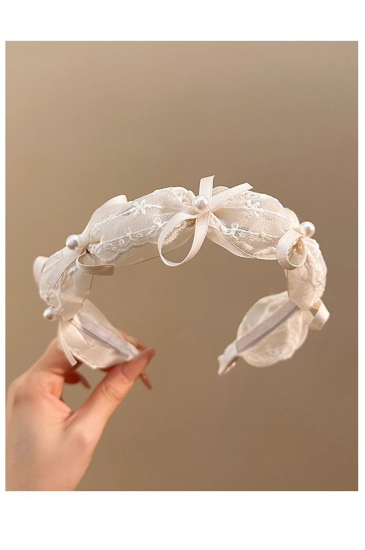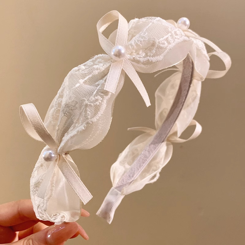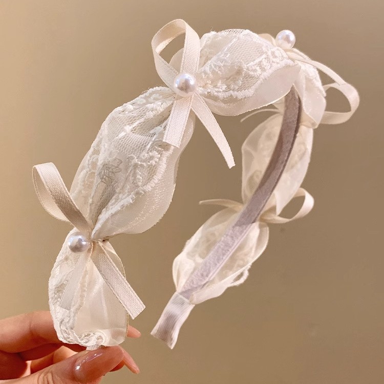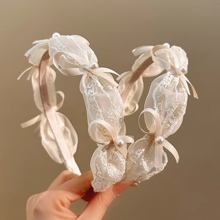 goddess ribbon pleated headband simple mesh flower knotted lace bow fashion pearl high skull top headdress