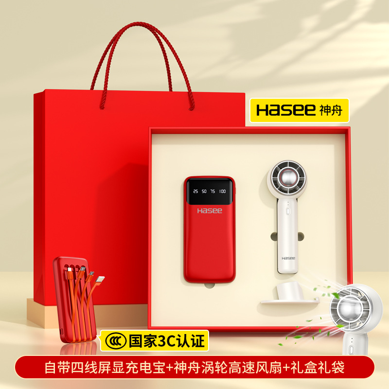 white/4-wire power bank + hasee t20 fan/red 4 gift box