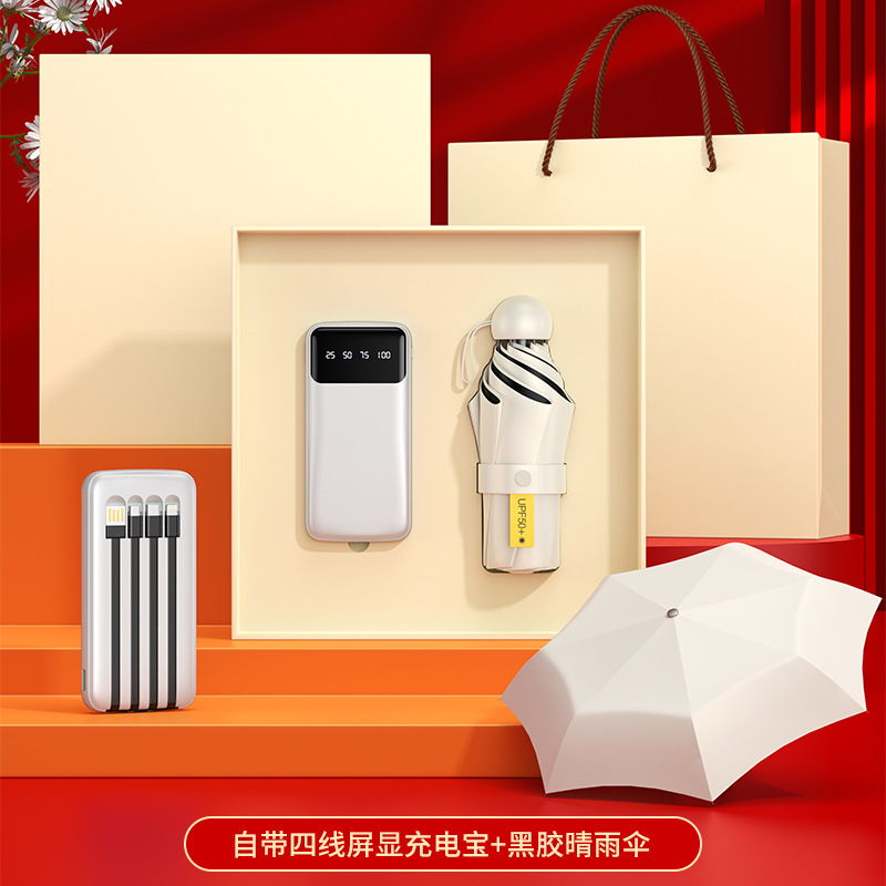 white/50% off umbrella +4 lines power bank/gift box