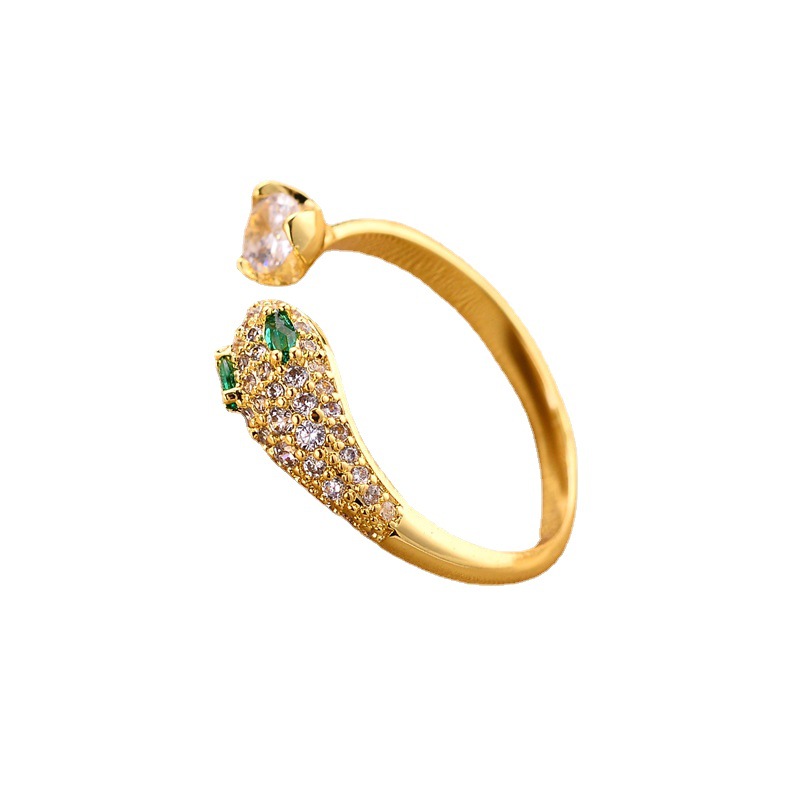 european and american cross-border ins fashion copper inlaid zirconium snake open ring creative personality zodiac exquisite cute ring jewelry