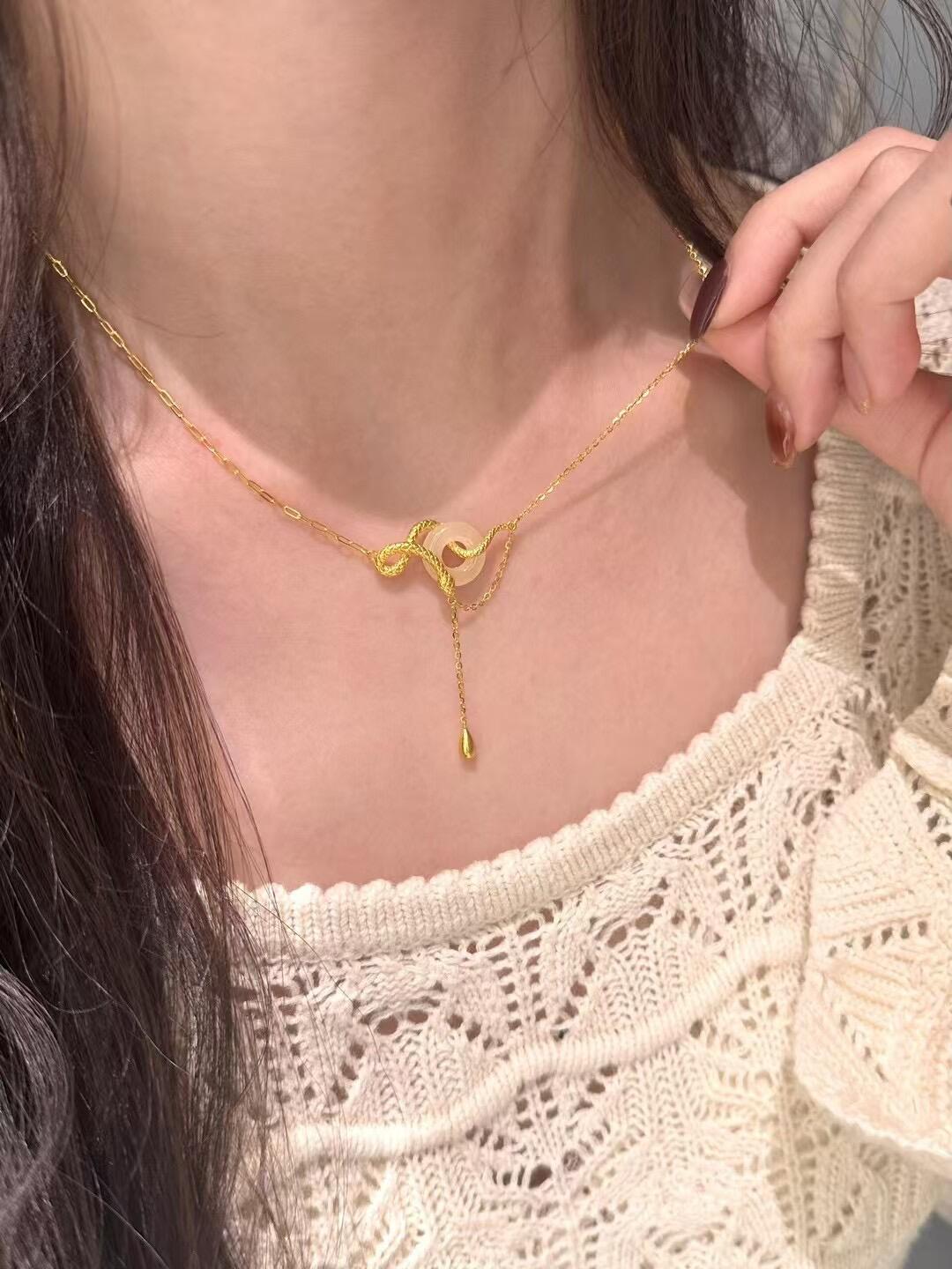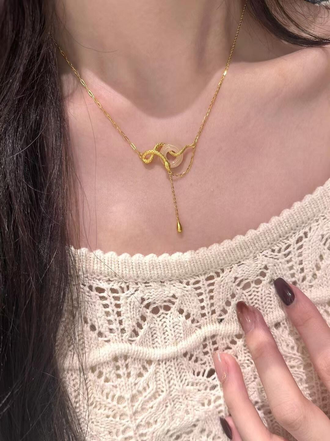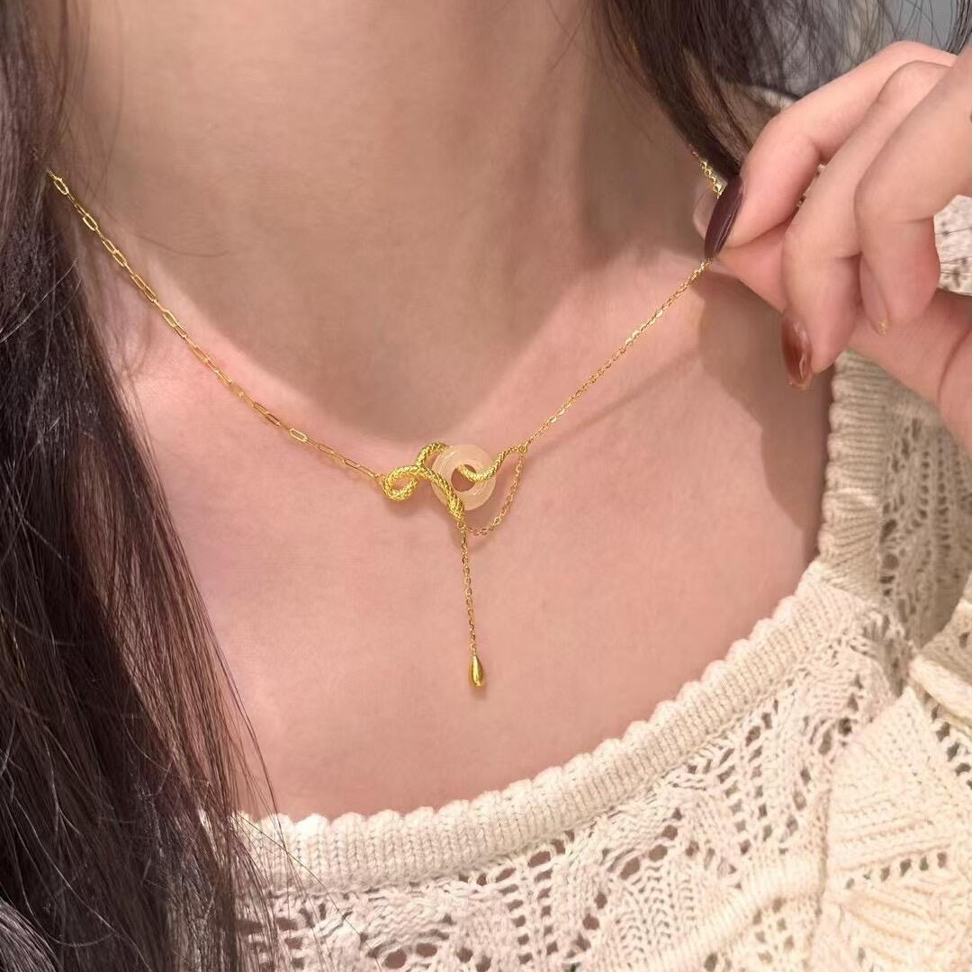 9312-golden snake peace buckle necklace