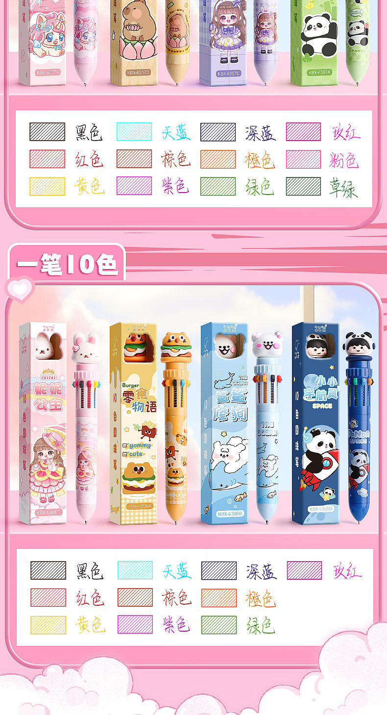ten-color ballpoint pen-pink nini