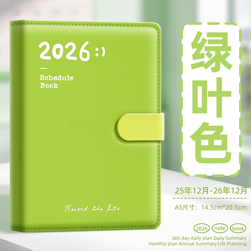 skin feeling 2026 magnetic snap schedule book-green leaf color