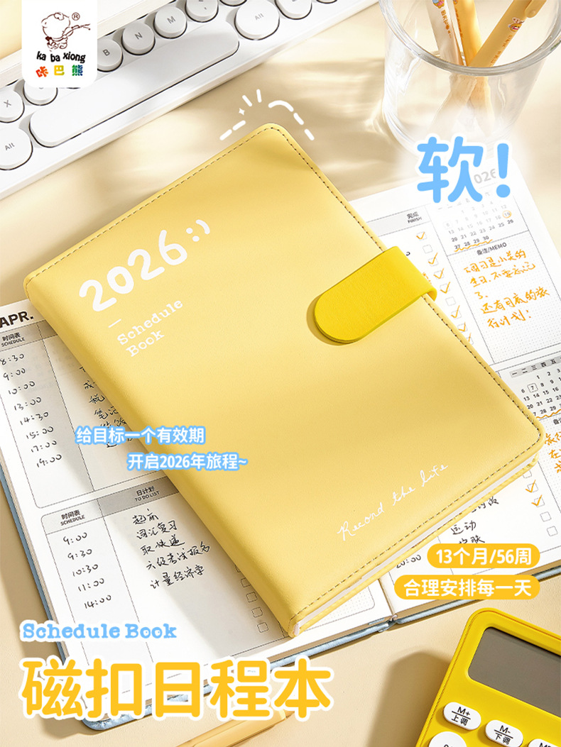 skin feeling 2026 magnetic snap schedule book-lime yellow