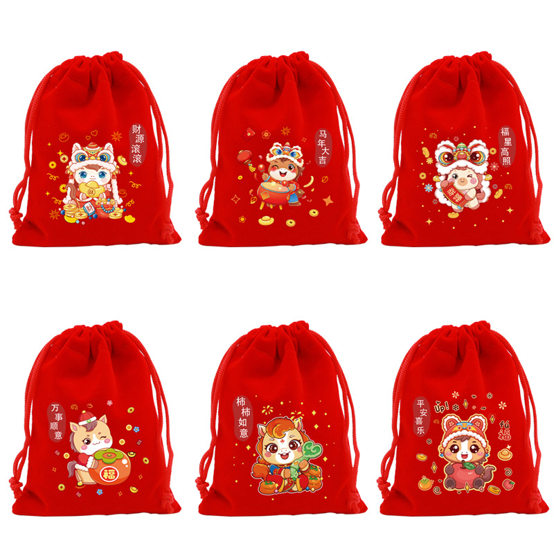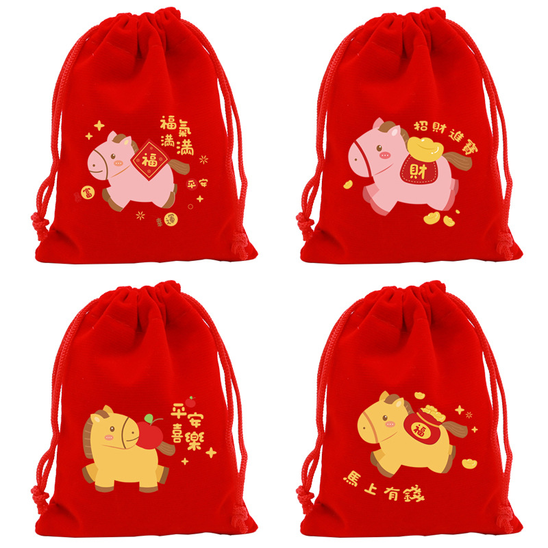 horse year random mixed [red velvet]; 9 * 12cm [can hold 6 wangzai candy]]