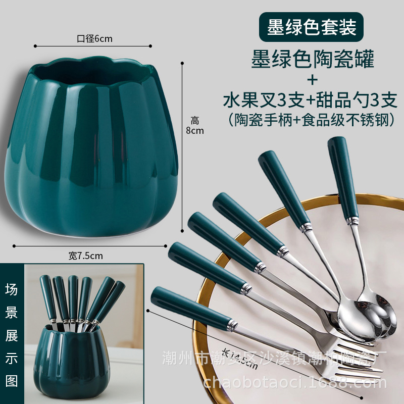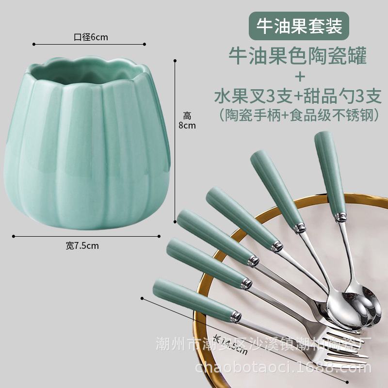 avocado-colored set [jar +3 forks, 3 spoons]