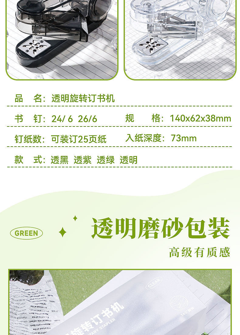 transparent rotary stapler-transparent green