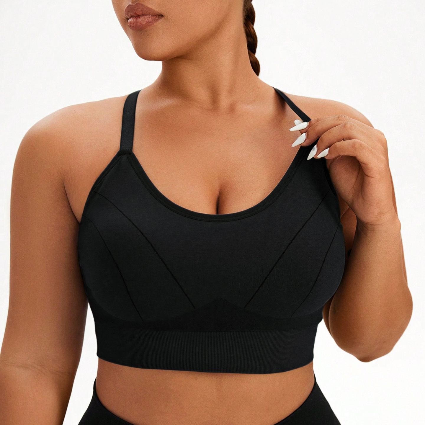 Large Size Yoga Bralette for Plus Size Women with Crossed High-Intensity Shock Absorption and Underwear-Like Design for Hidden Underwear and Fitness Sport Bra